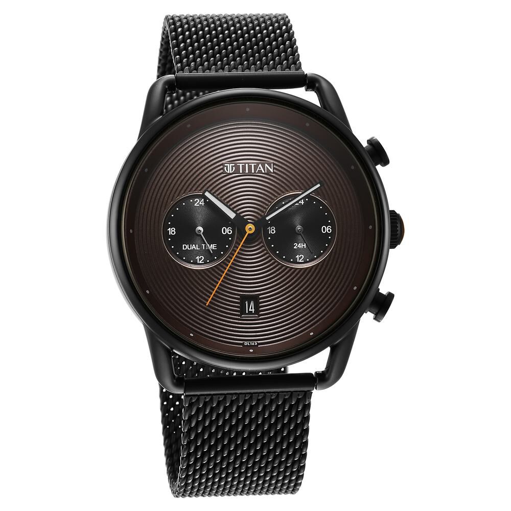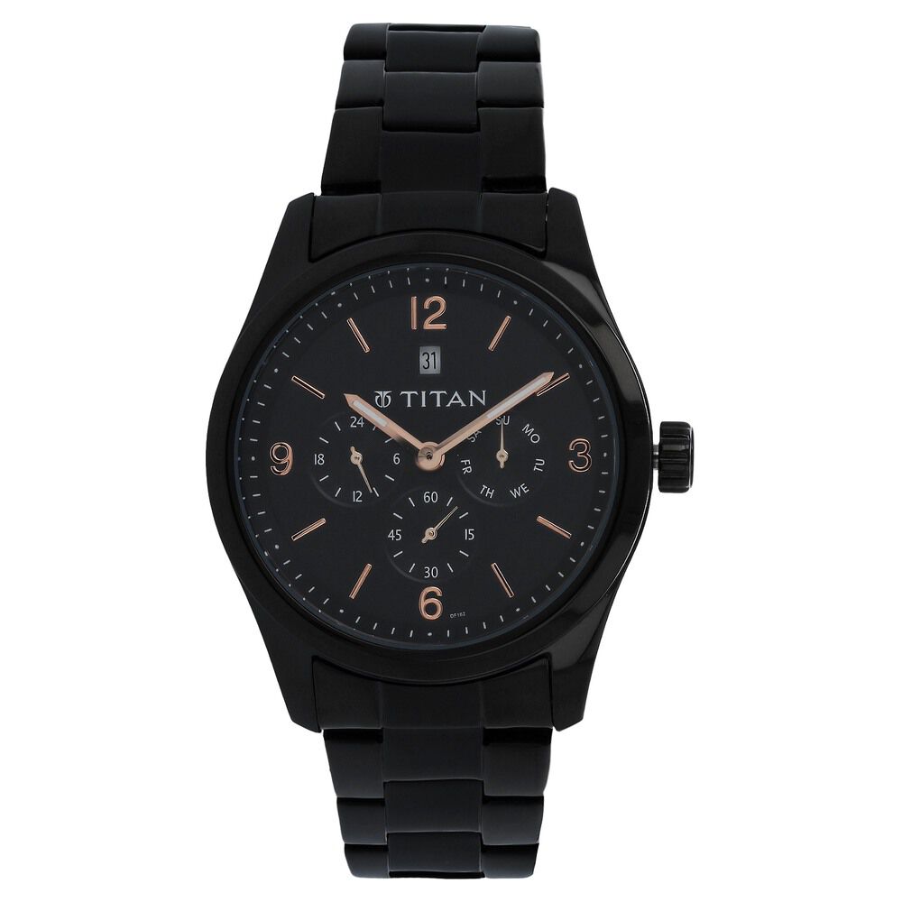 Titan Quartz Analog Black Dial Metal Strap Watch for Men-NE1584SM02C