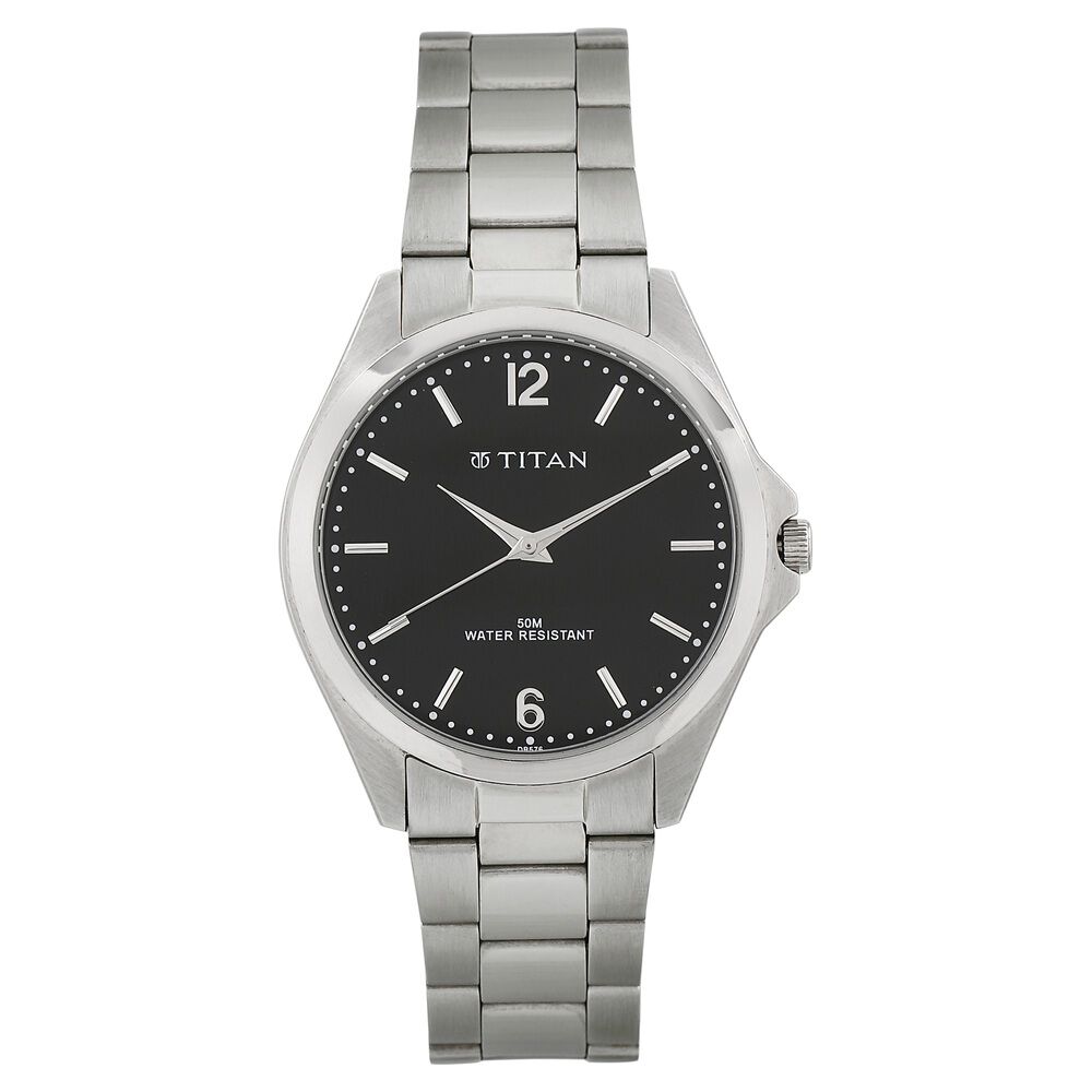 Titan Quartz Analog Black Dial Stainless Steel Strap Watch for Men-NK1739SM02