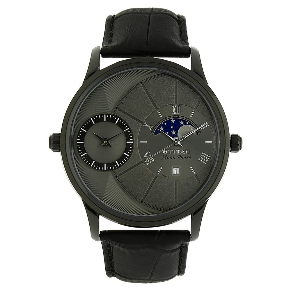 Titan Moonphase Gun Dial Stainless Steel Strap watch for Men-90050QM01