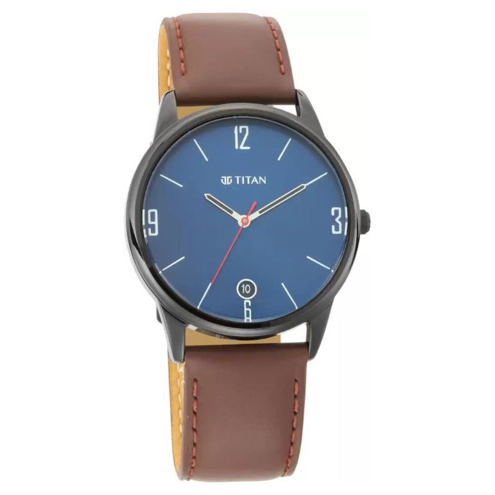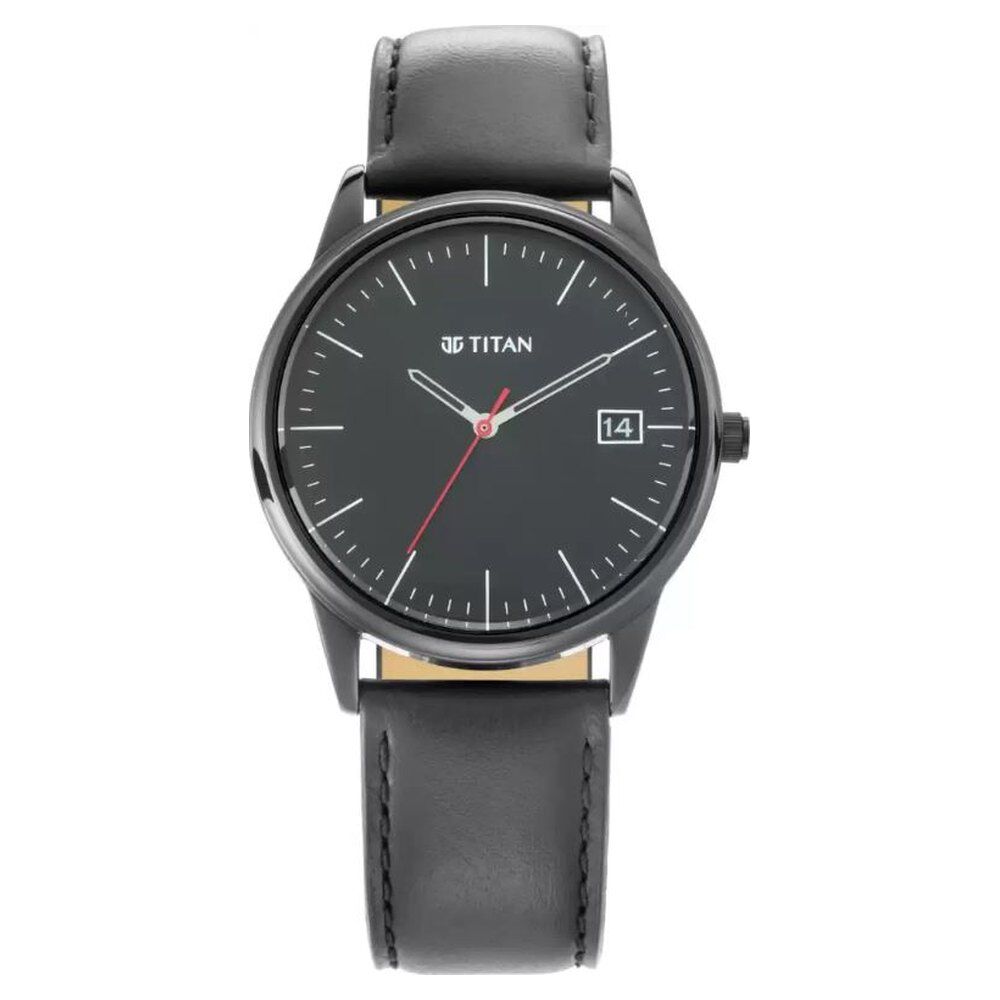 Titan Men's Timeless Style Watch: Refined Anthra Dial and Leather Strap-NS1806NL03
