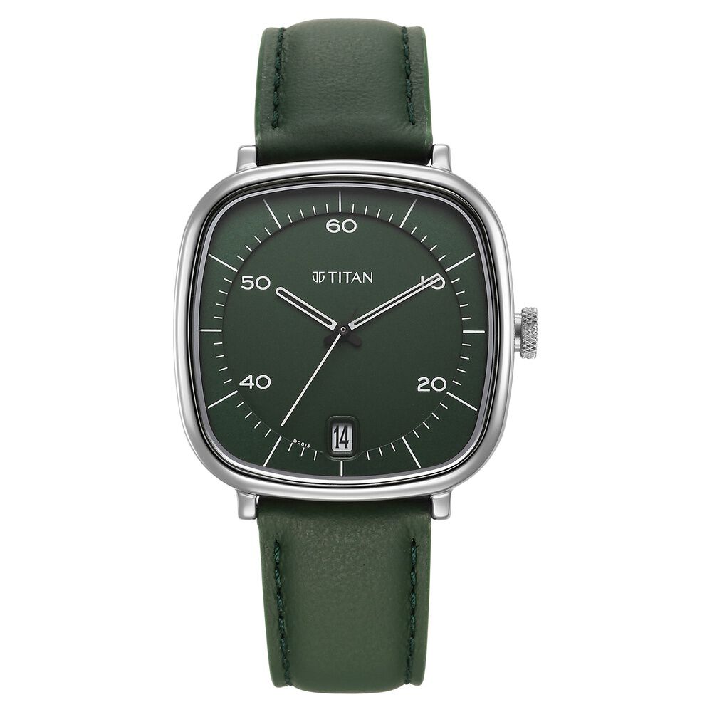 Titan Minimals Green Dial Analog with Date Leather Strap watch for Men-NS1849SL02