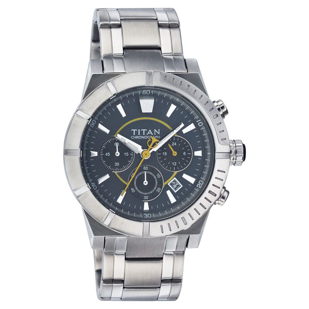 Titan Chronograph Grey Dial Stainless Steel Strap Watch for Men-9466KM06