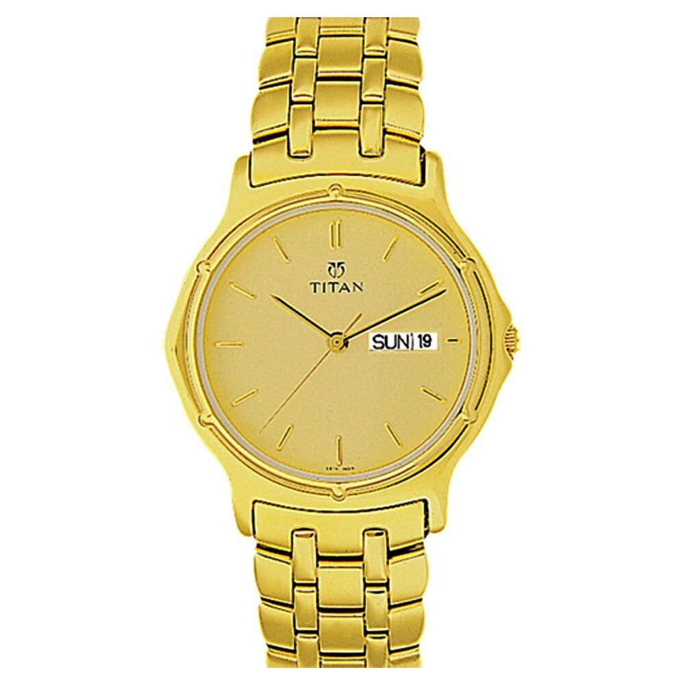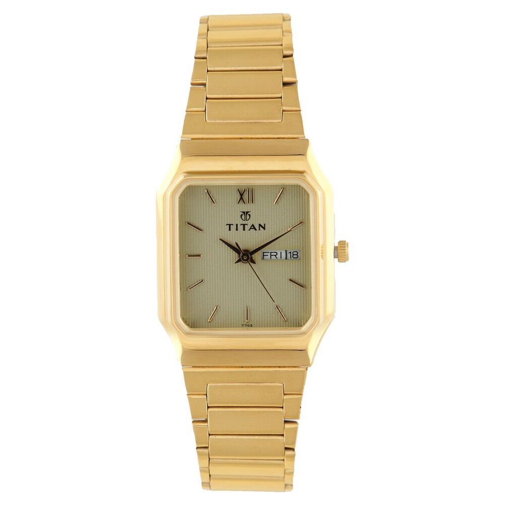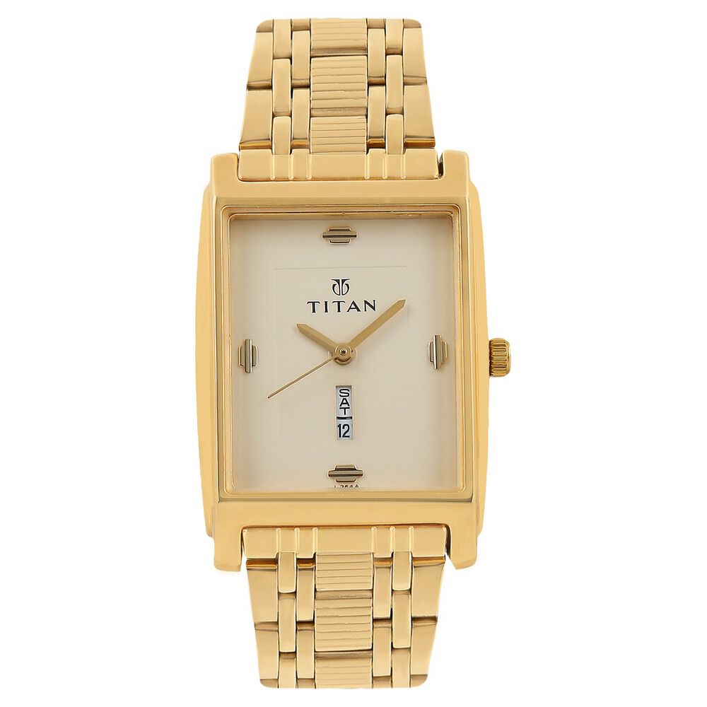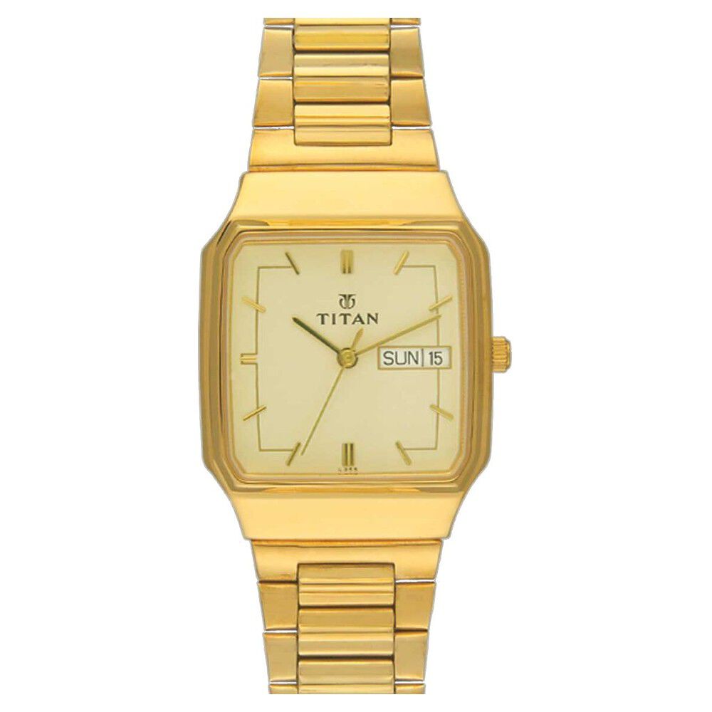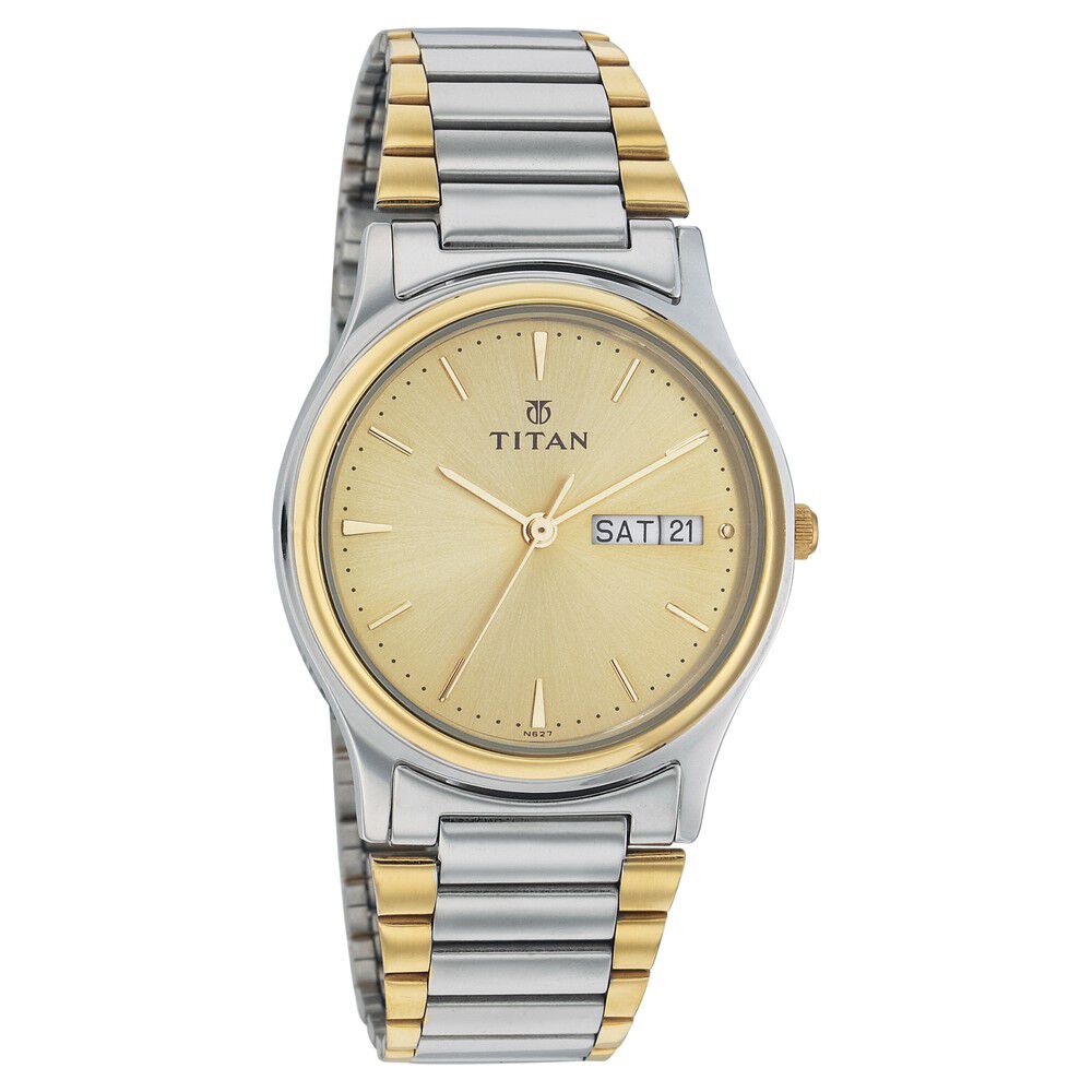 Titan Quartz Analog with Day and Date Champagne Dial Watch for Men-NE1581YL05