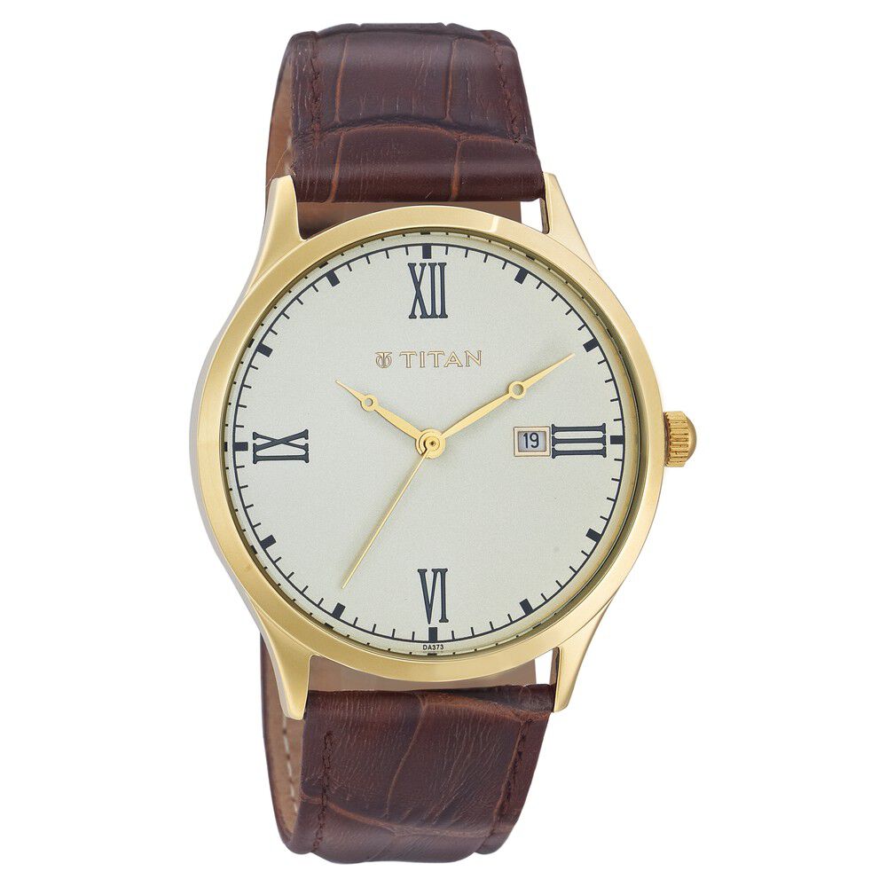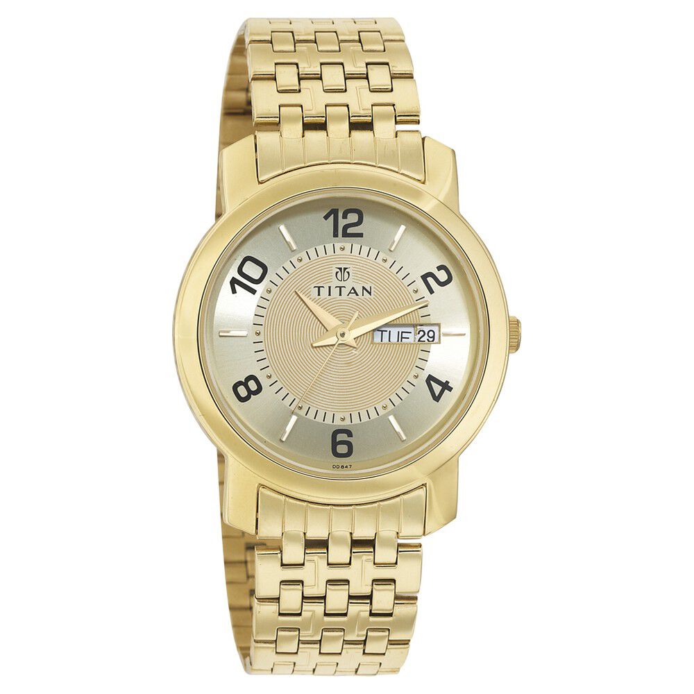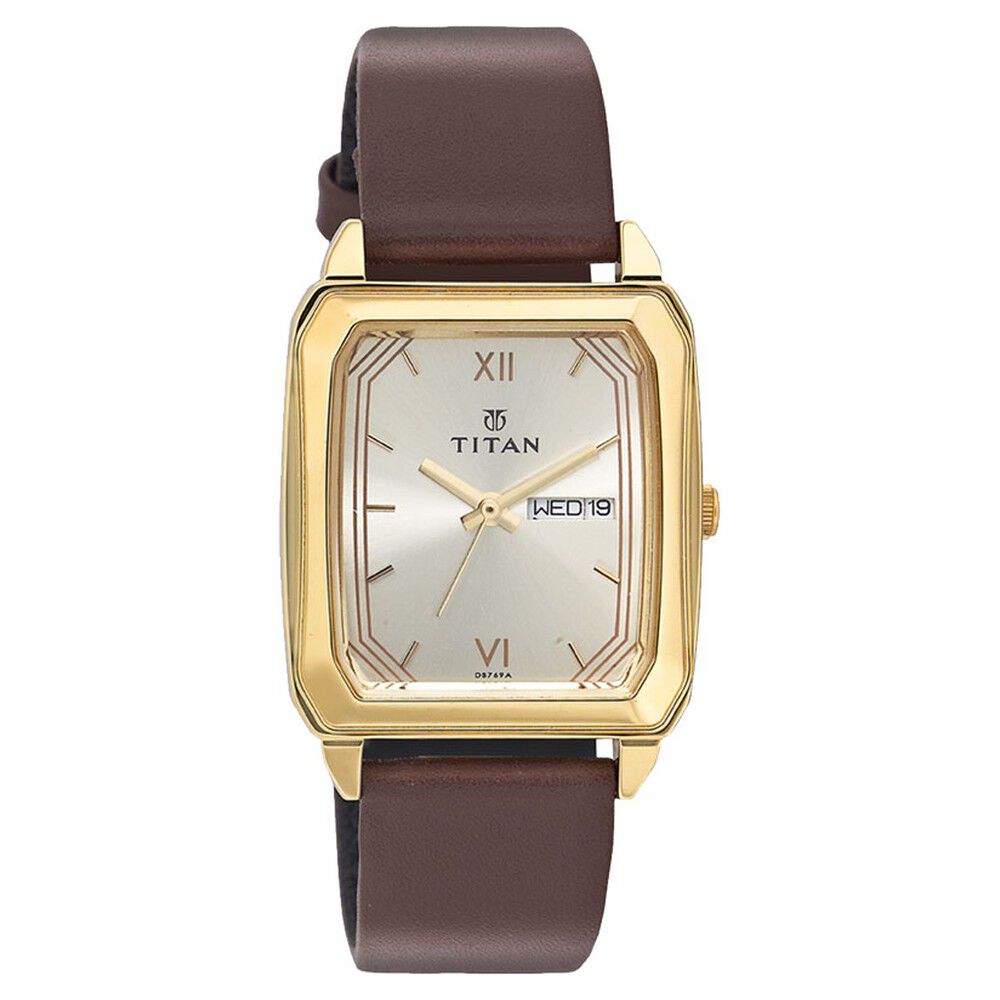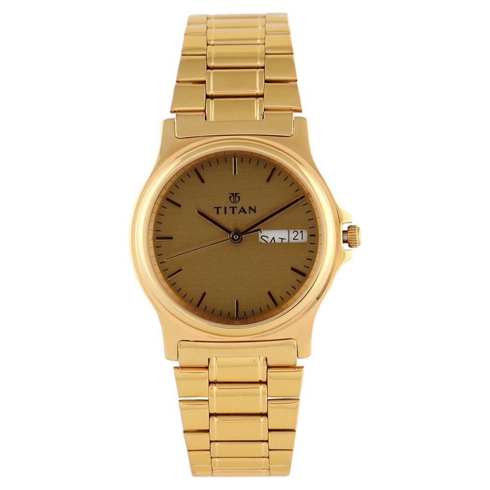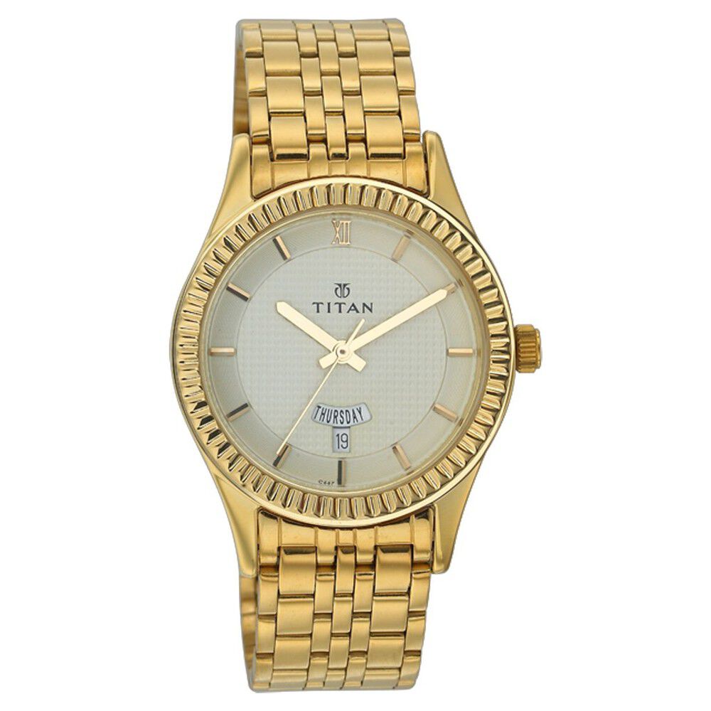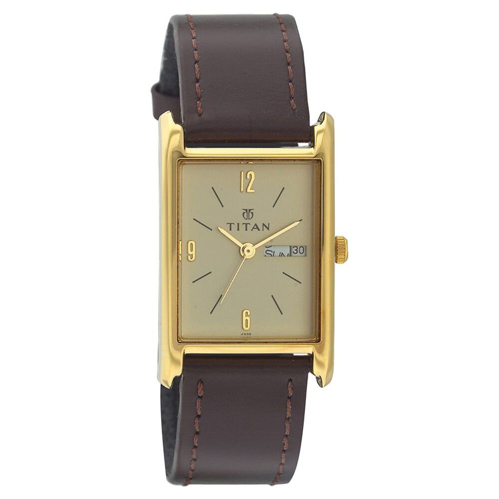 Titan Quartz Analog with Day and Date Champagne Dial Watch for Men-NE161YM34