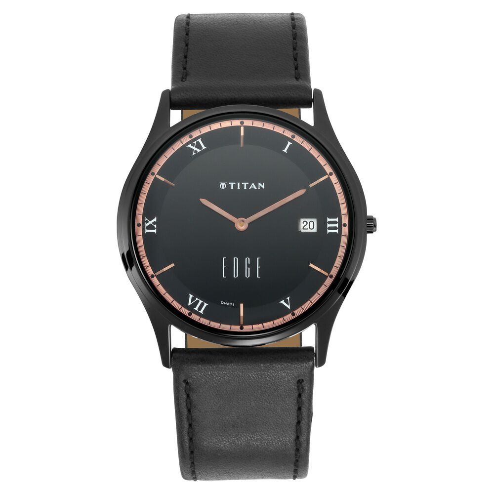 Titan Edge Black Dial Analog with Date Leather Strap watch for Men-NQ1683NL02