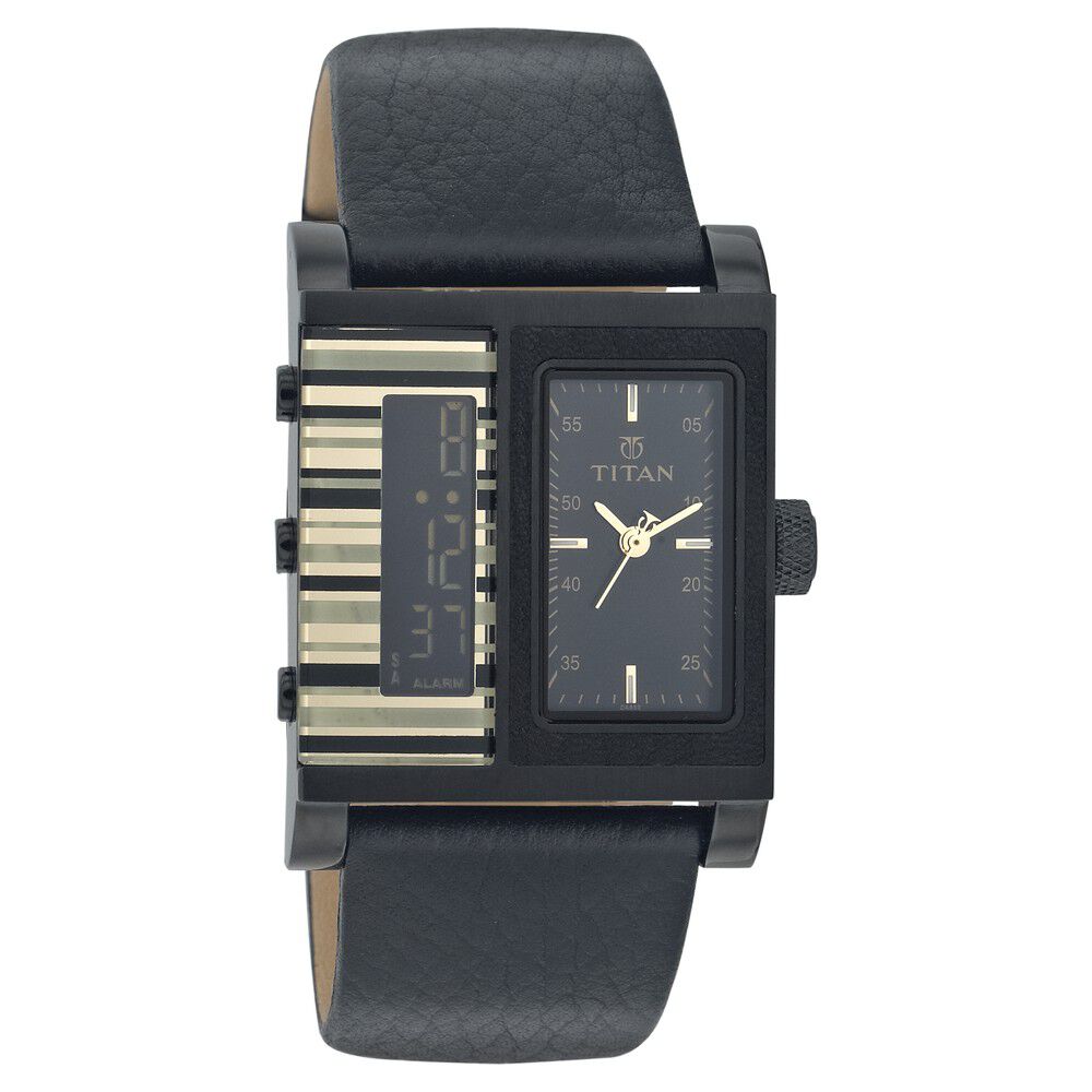 Titan Digital Black Dial Quartz Leather Strap watch for Men-NC9411NL01