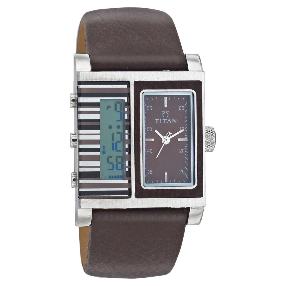 Titan Digital Brown Dial Leather Strap watch for Men-NC9411SL01