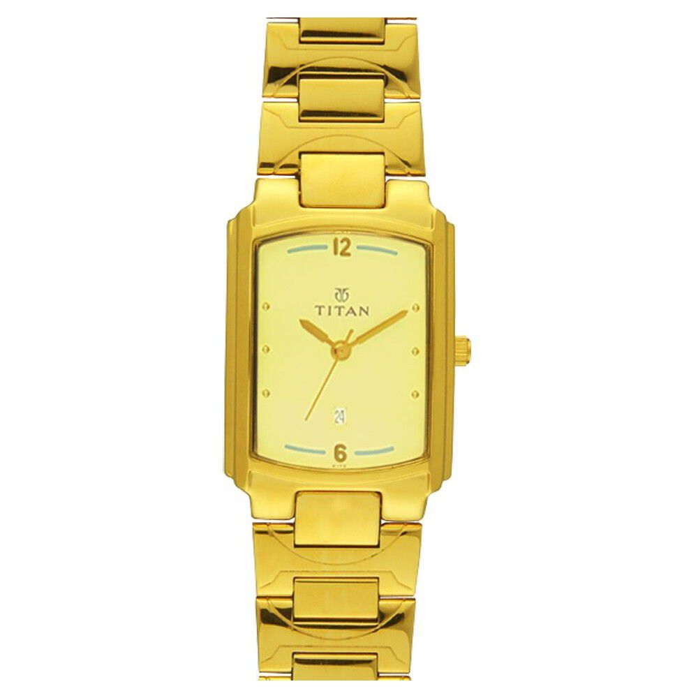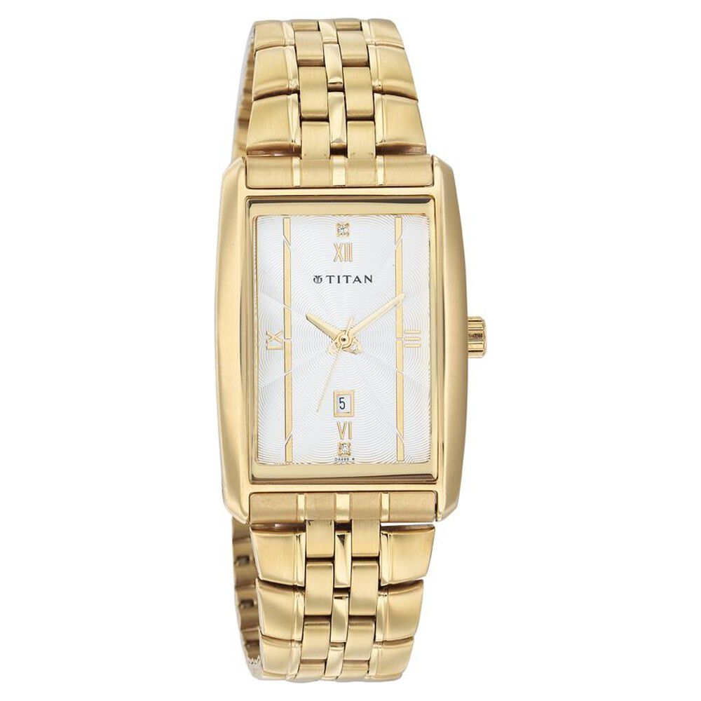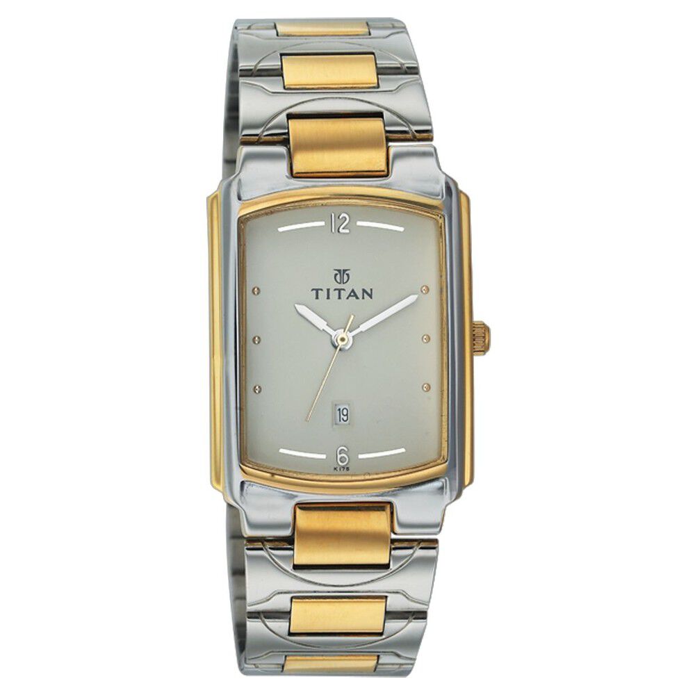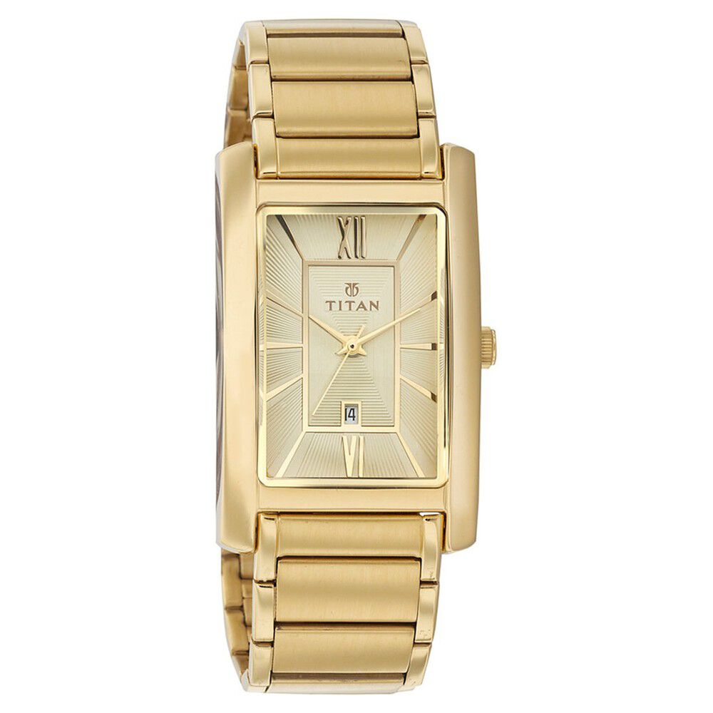 Titan Rectangle Champagne Dial Analog with Date Stainless Steel Strap watch for Men-NT9315YM02