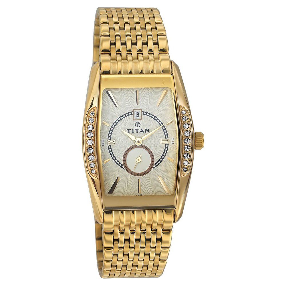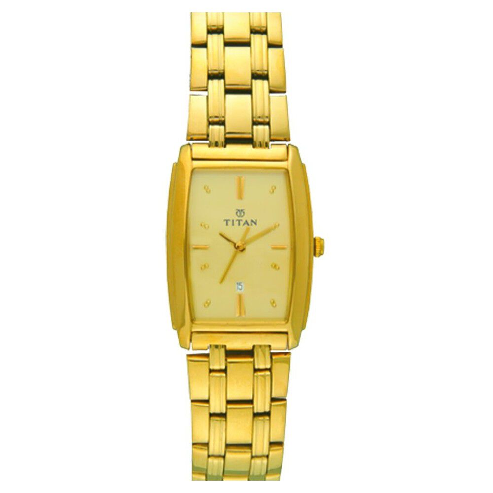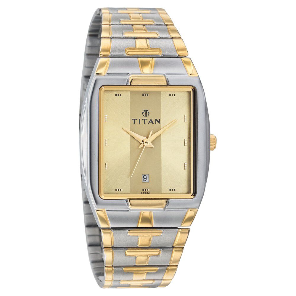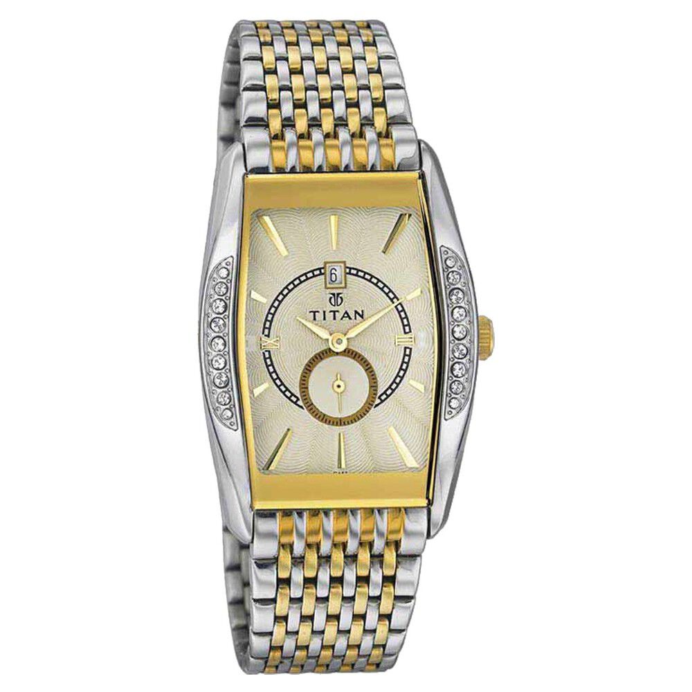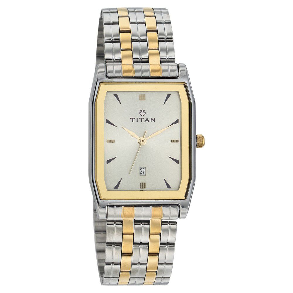 Titan Rectangle Champagne Dial Analog with Date Stainless Steel Strap watch for Men-NT9315YM02
