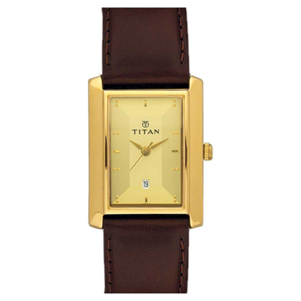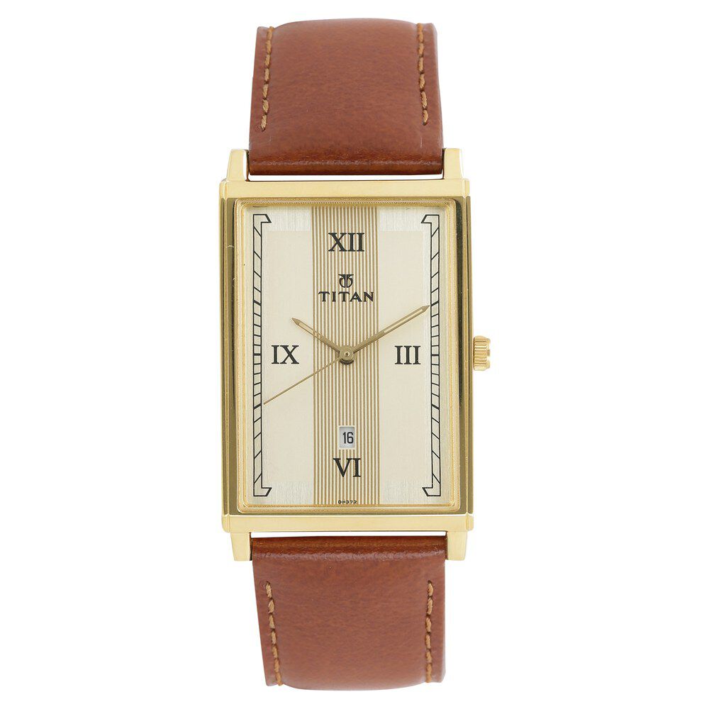 Titan Analog with Date Champagne Dial Leather Strap watch for Men-NL1776YL01