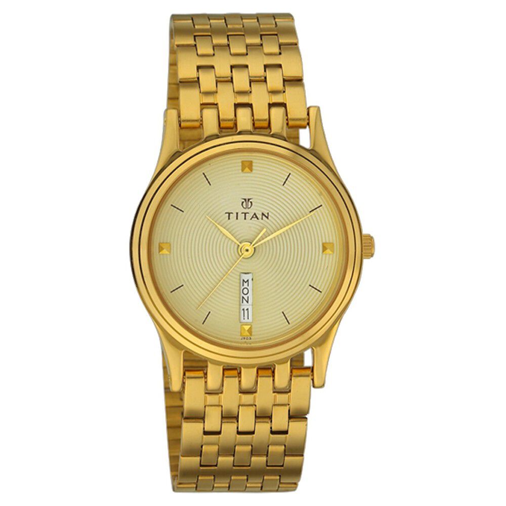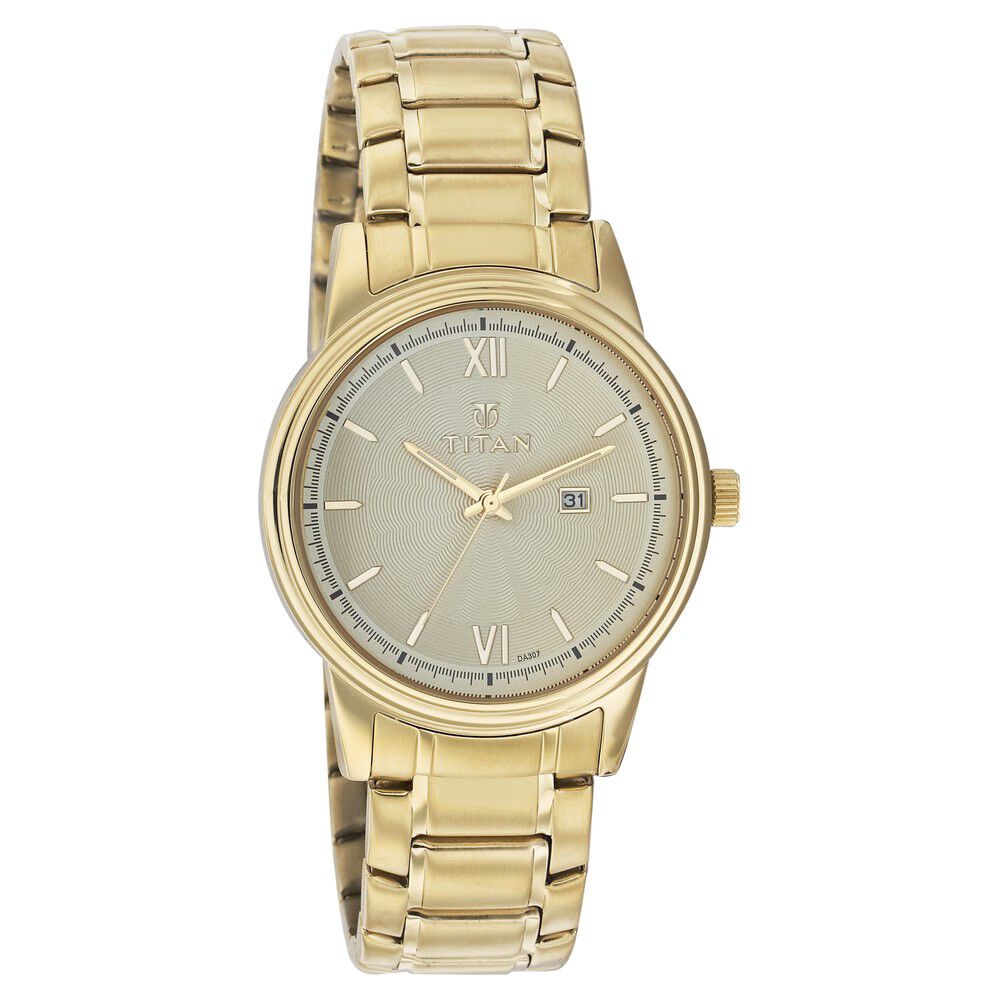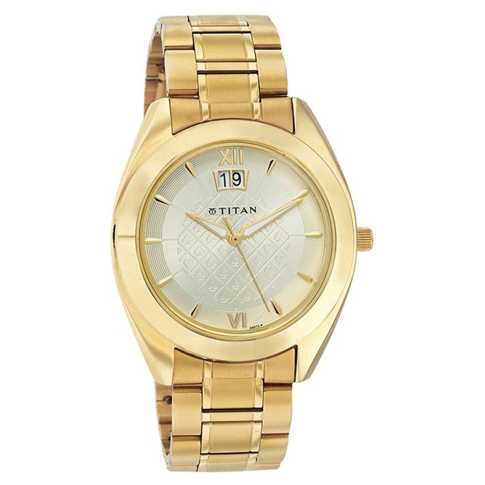 Titan Quartz Analog with Date Champagne Dial Watch for Men-NE1557YM03