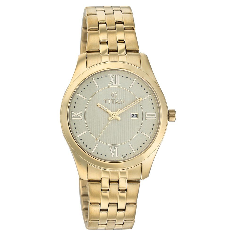 Titan Champagne Dial Analog with Date Stainless Steel Strap watch for Men-NF617YM22