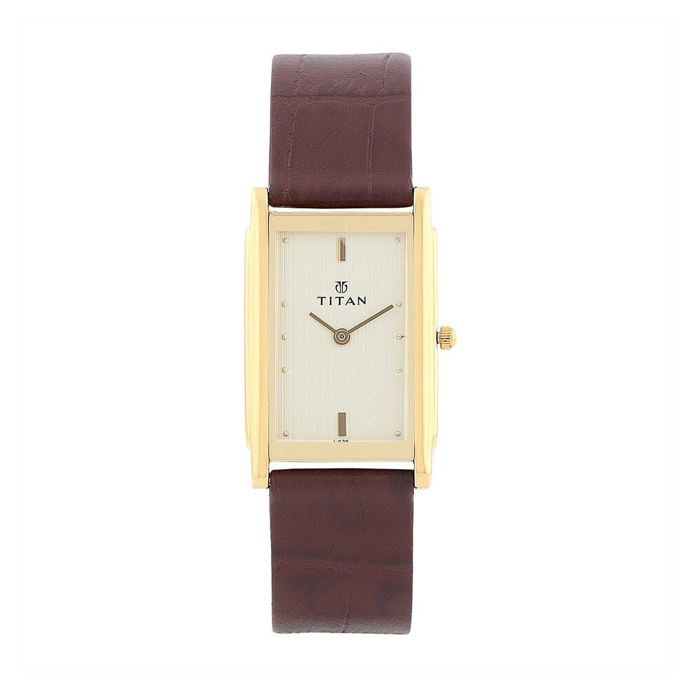 Titan Workwear Champagne Dial Analog Leather Strap watch for Men-1802SL03
