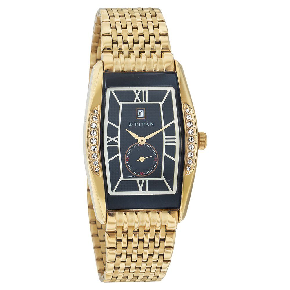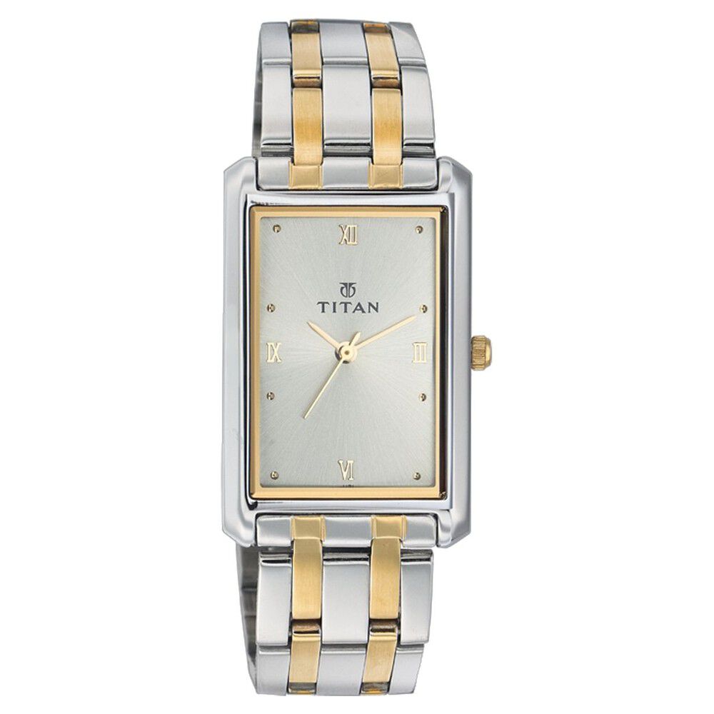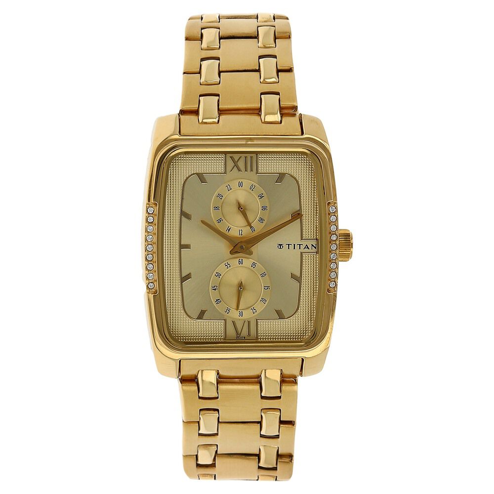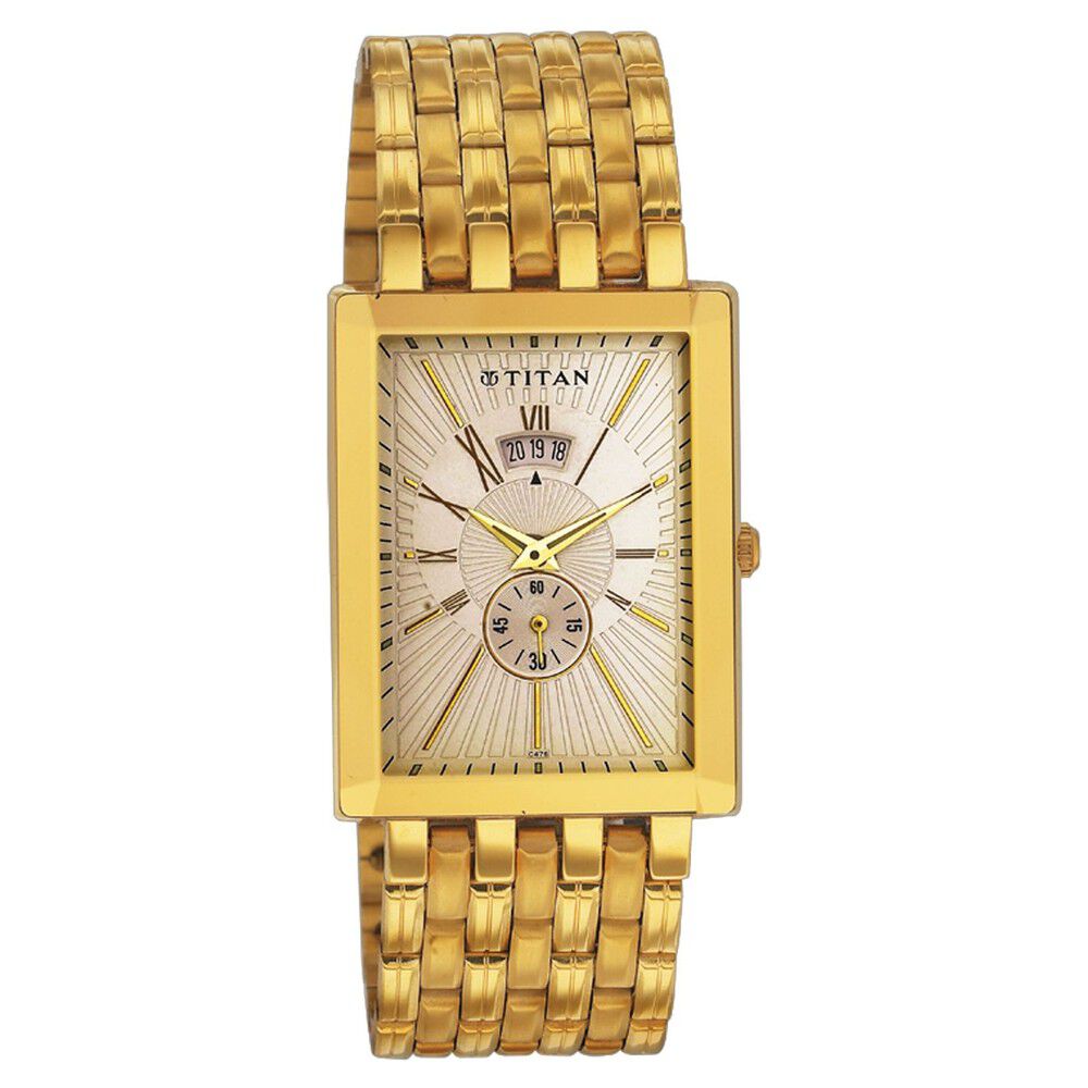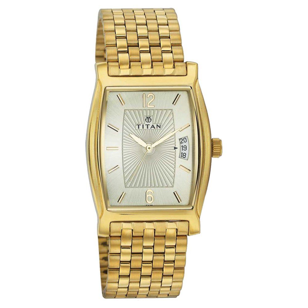 Titan Rectangular Champagne Dial Analog with Date Stainless Steel Strap watch for Men-NP1777YM02