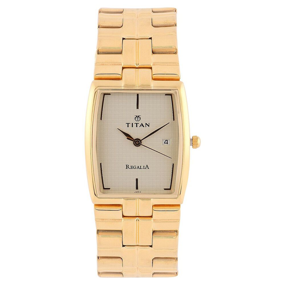 Titan Regalia Rome Champagne Dial Analog with Date Stainless Steel Strap watch for Men-1720YM01