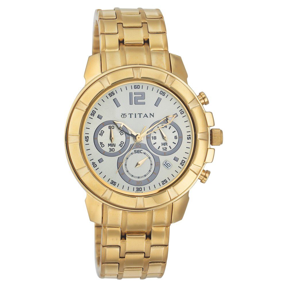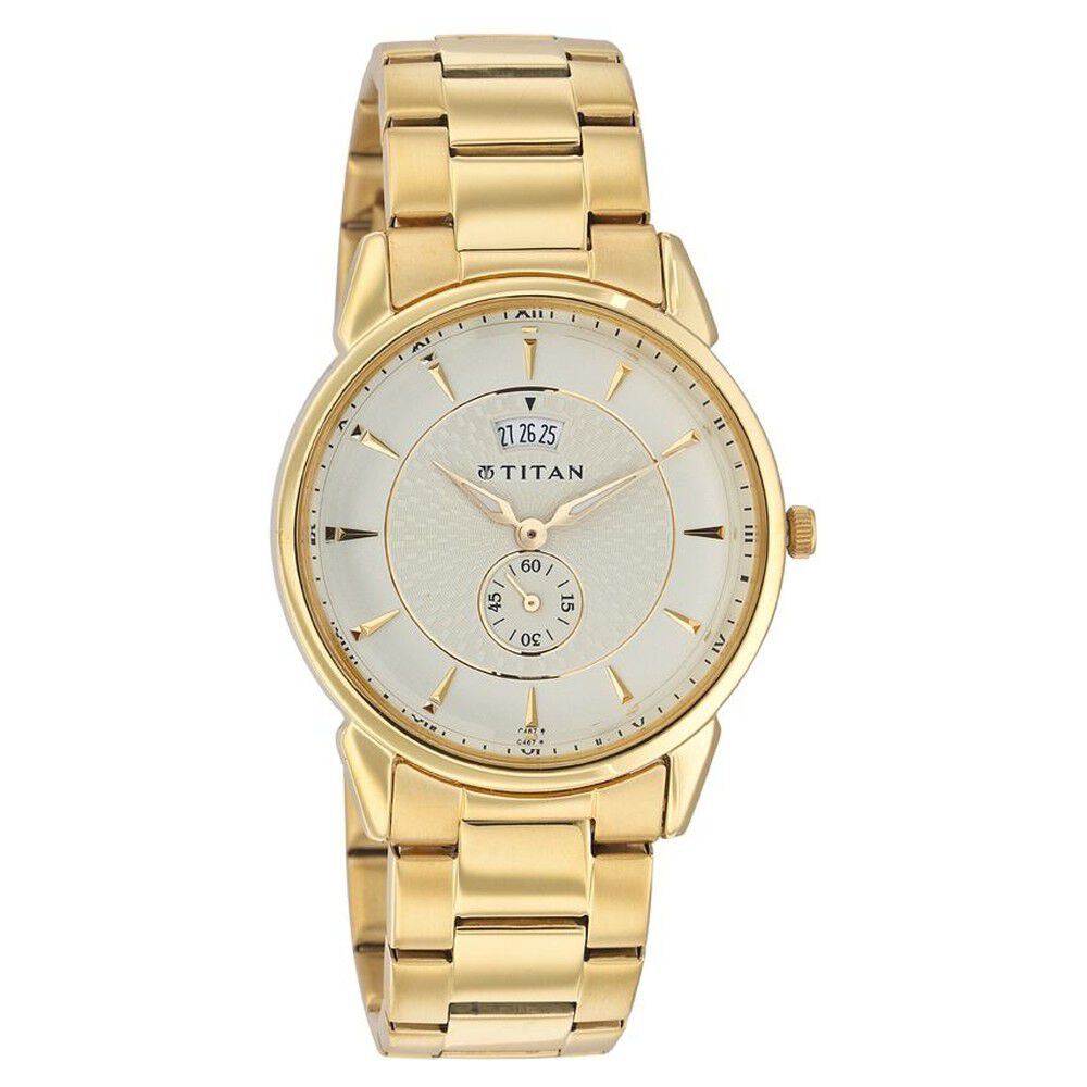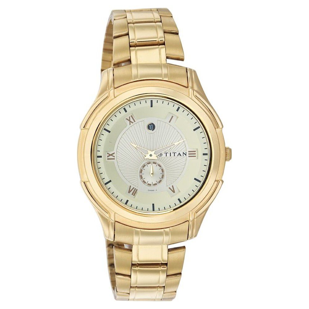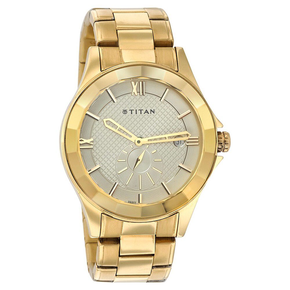 Titan Analog with Date Champagne Dial Stainless Steel Strap watch for Men-NK1318YM02