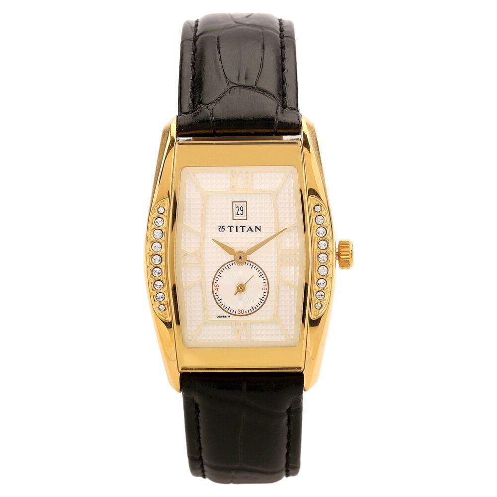 Titan Classic White Dial Leather Strap Watch for Men-NE1527YM06