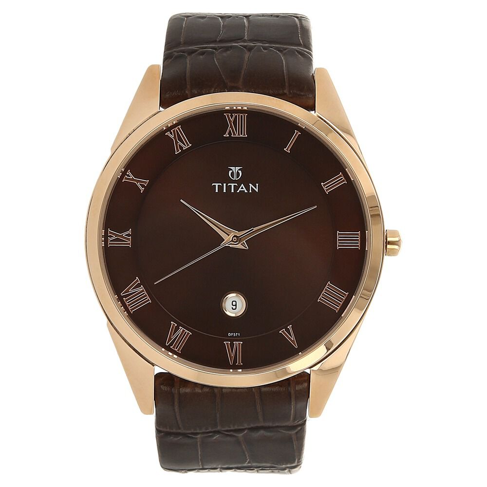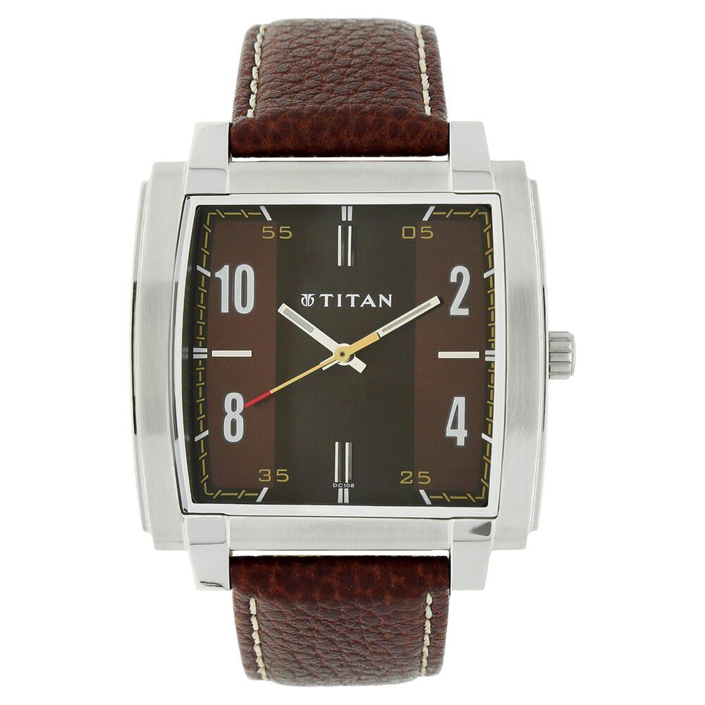 Titan Analog Brown Dial Leather Strap watch for Men-NK1586SL03