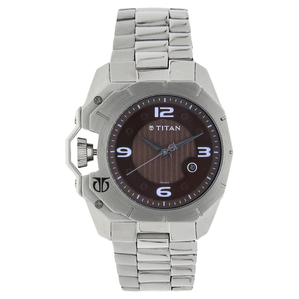 Titan Quartz Brown Dial Analog with Date Stainless Steel Strap watch for Men-NJ1699NM01