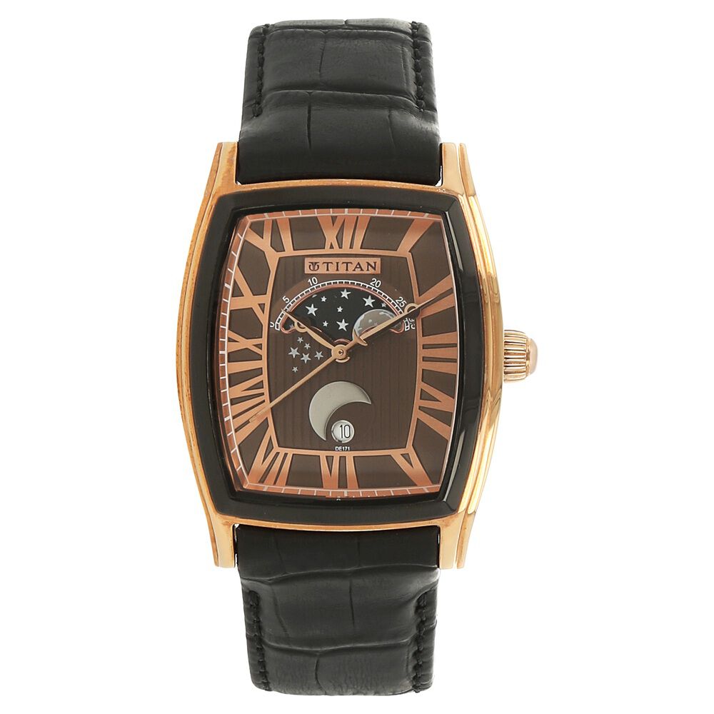 Titan MoonphaseBrown DialQuartzLeather Strap watch for Men-1661KL01