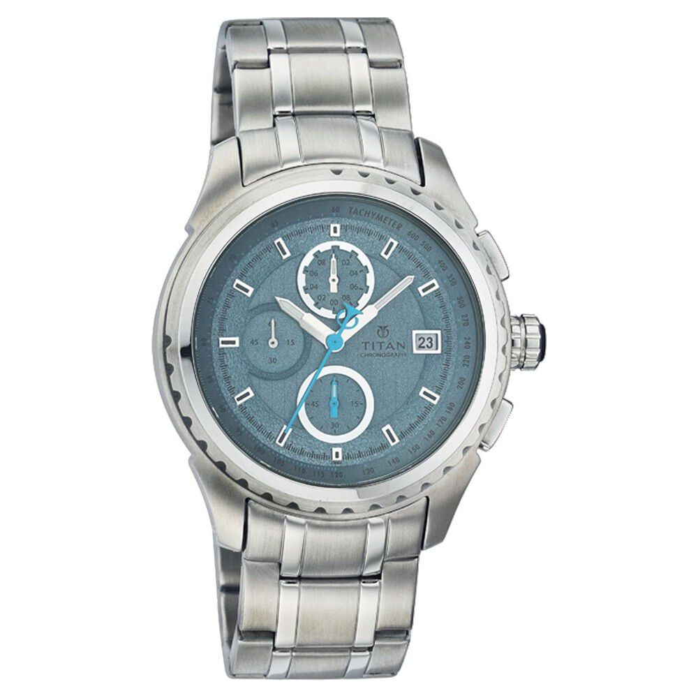 Titan Octane Blue Dial Chrono Stainless Steel Strap watch for Men-NM90047KM02