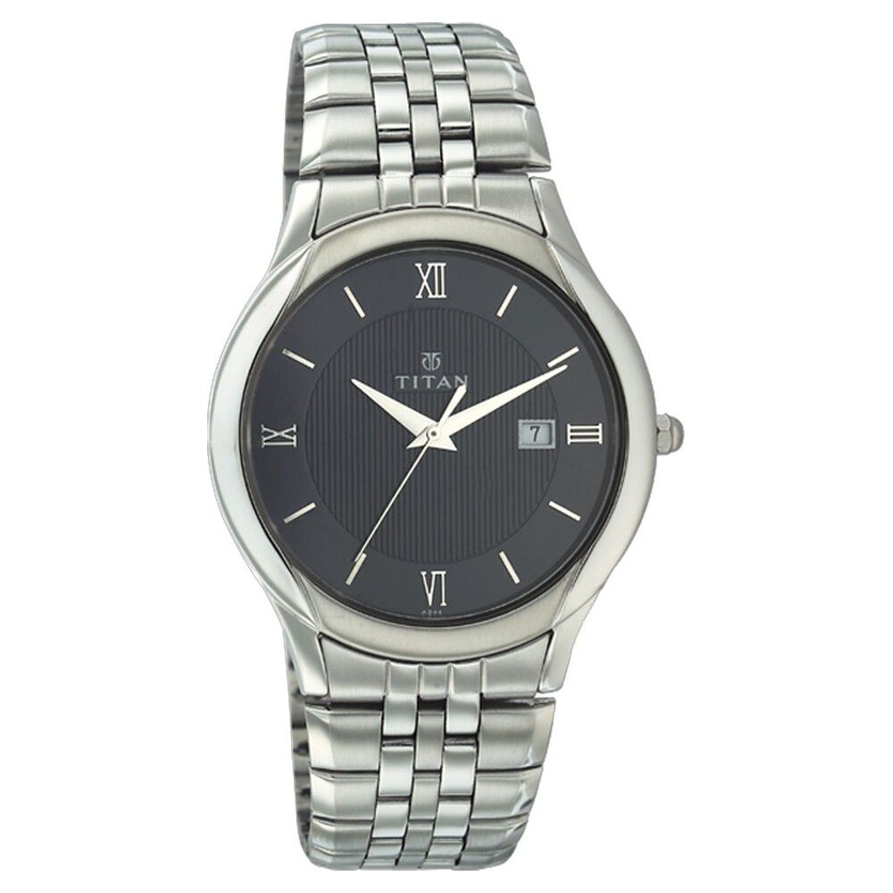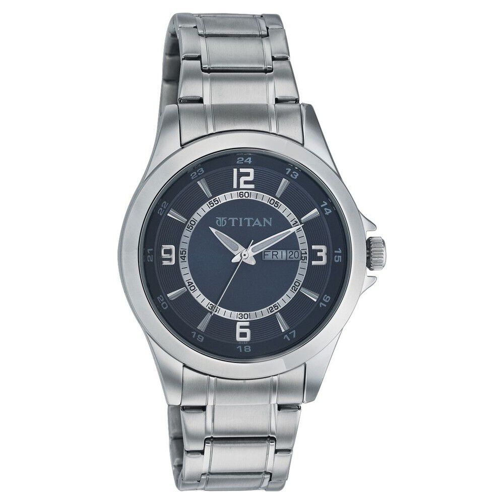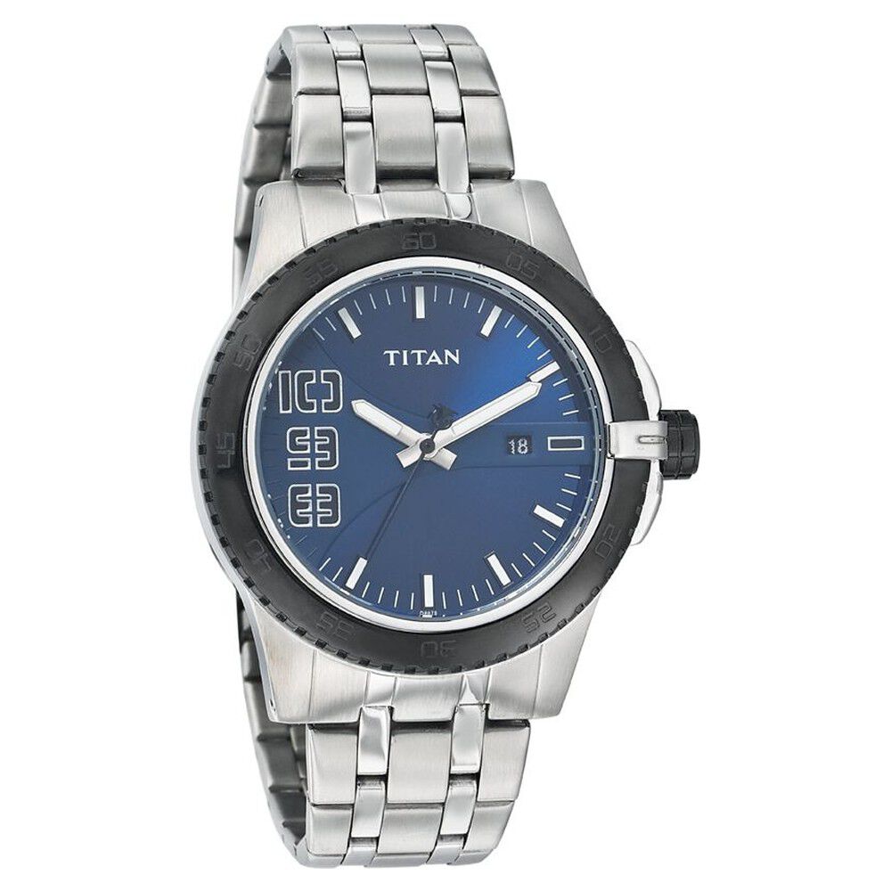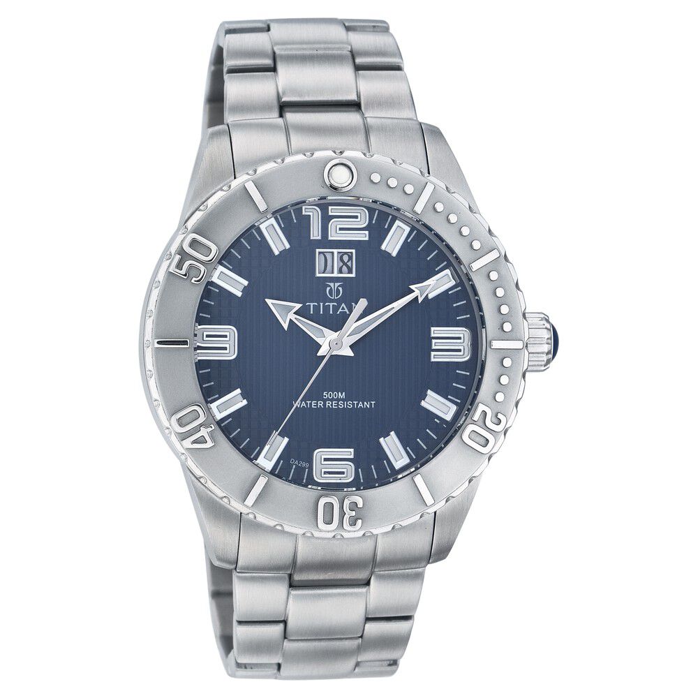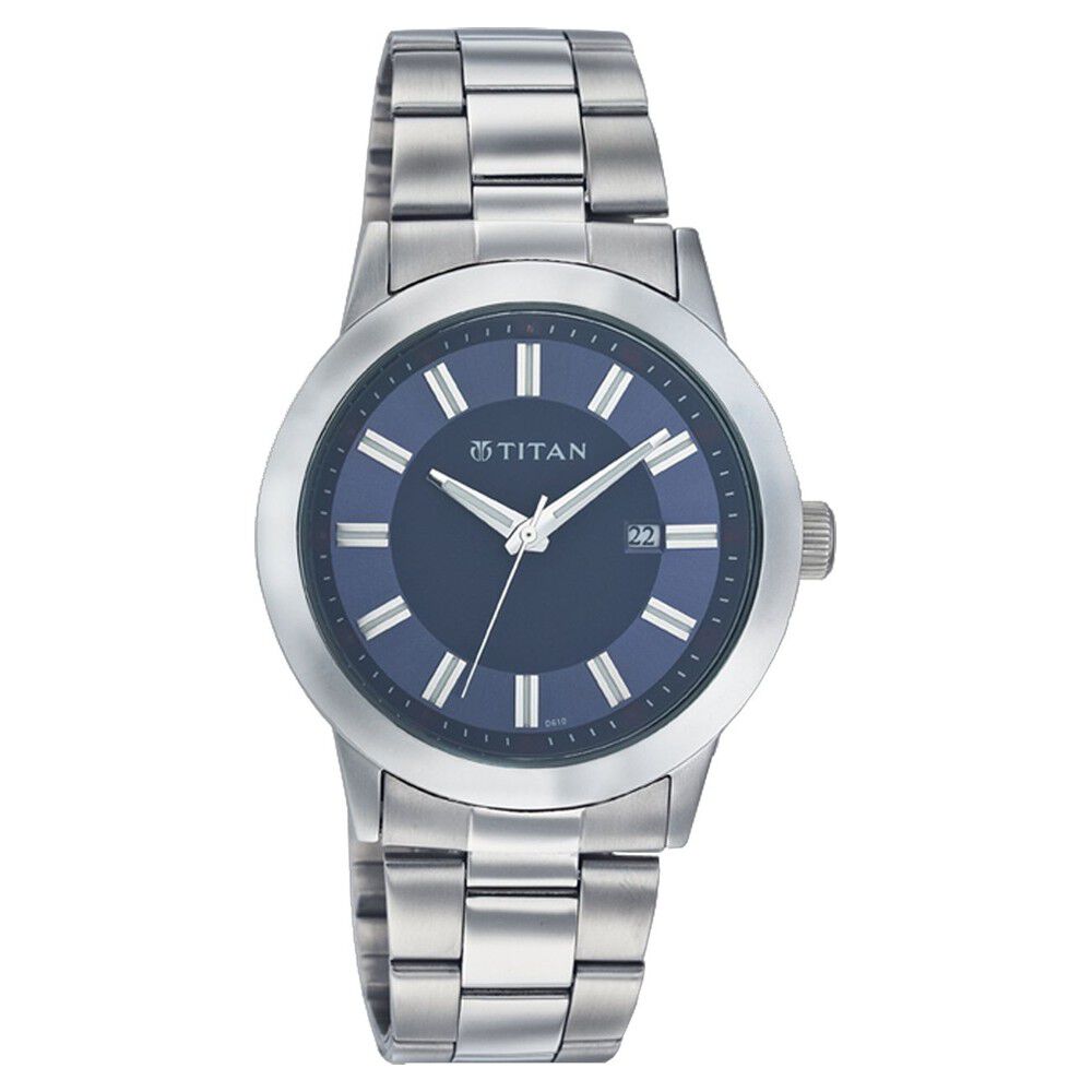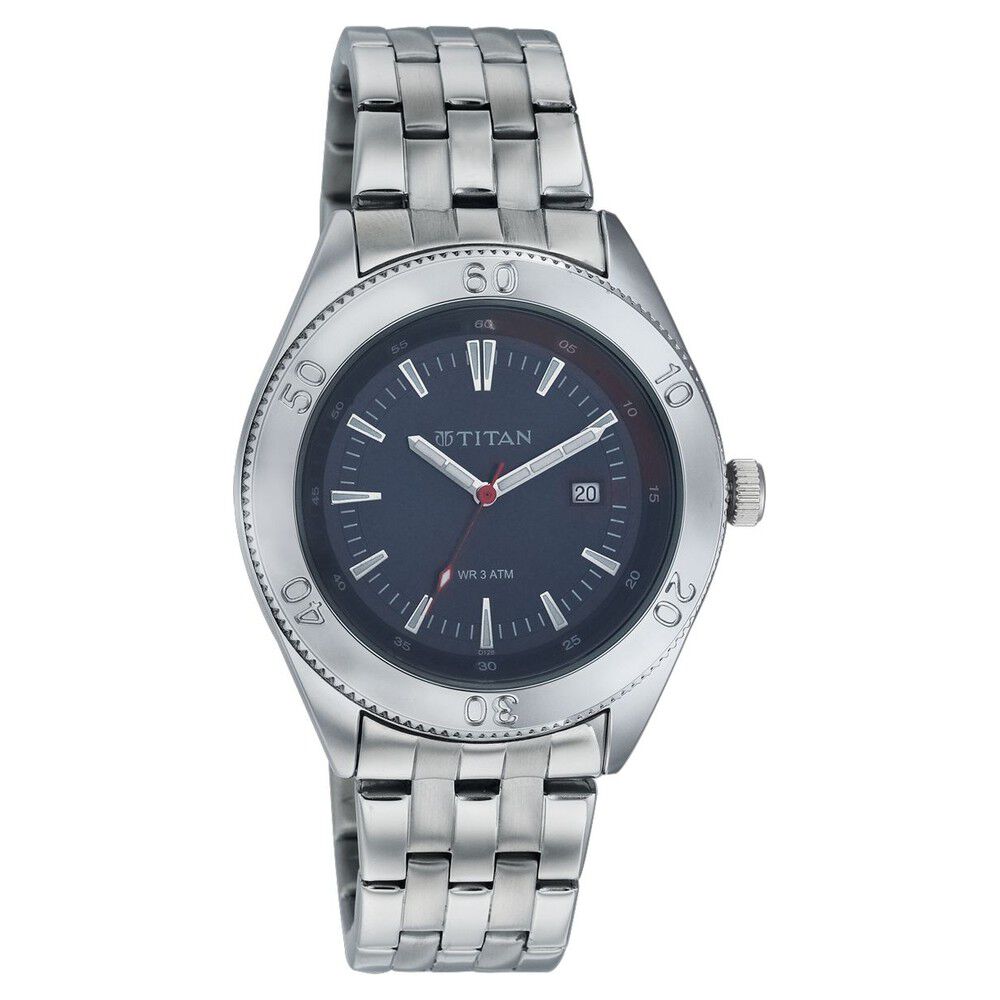 Titan Analog with Date Blue Dial Stainless Steel Strap watch for Men-NL90076SM02