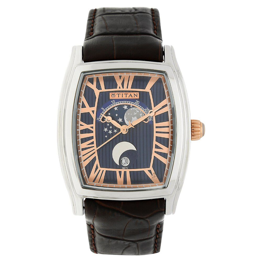Titan Moonphase Blue Dial Leather Strap watch for Men-1661SL01