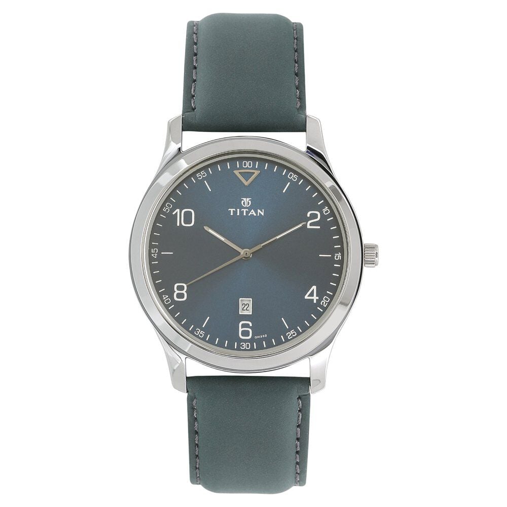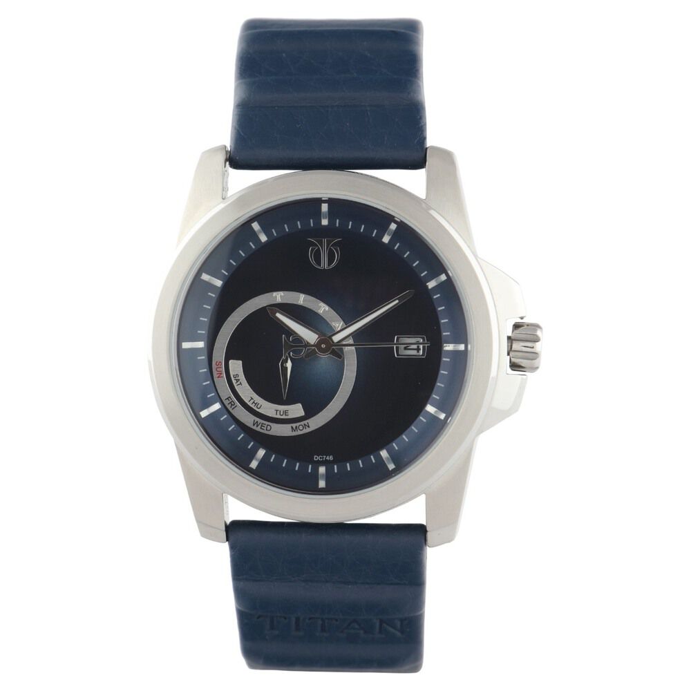 Titan Analog with Date Blue Dial Leather Strap Watch for Men-NE9280SL03A