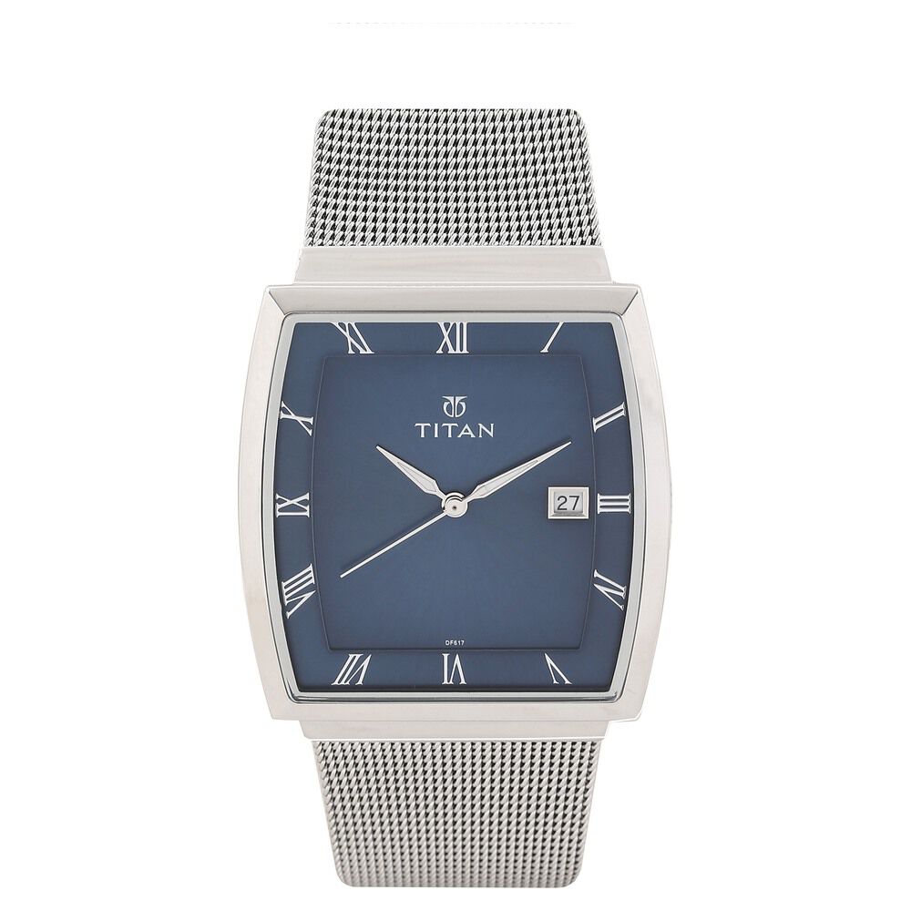 Titan Men's Urban Refinement: Sleek Blue Dial with Silver Stainless Steel Strap Watch-NT1730SM03