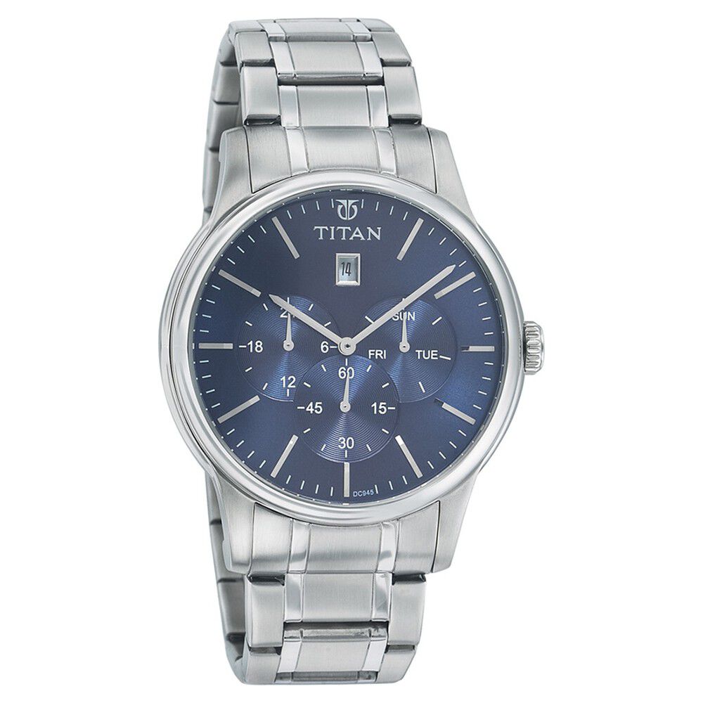 Titan Round Blue Dial Analog with Date Stainless Steel Strap watch for Men-NJ1699SM01