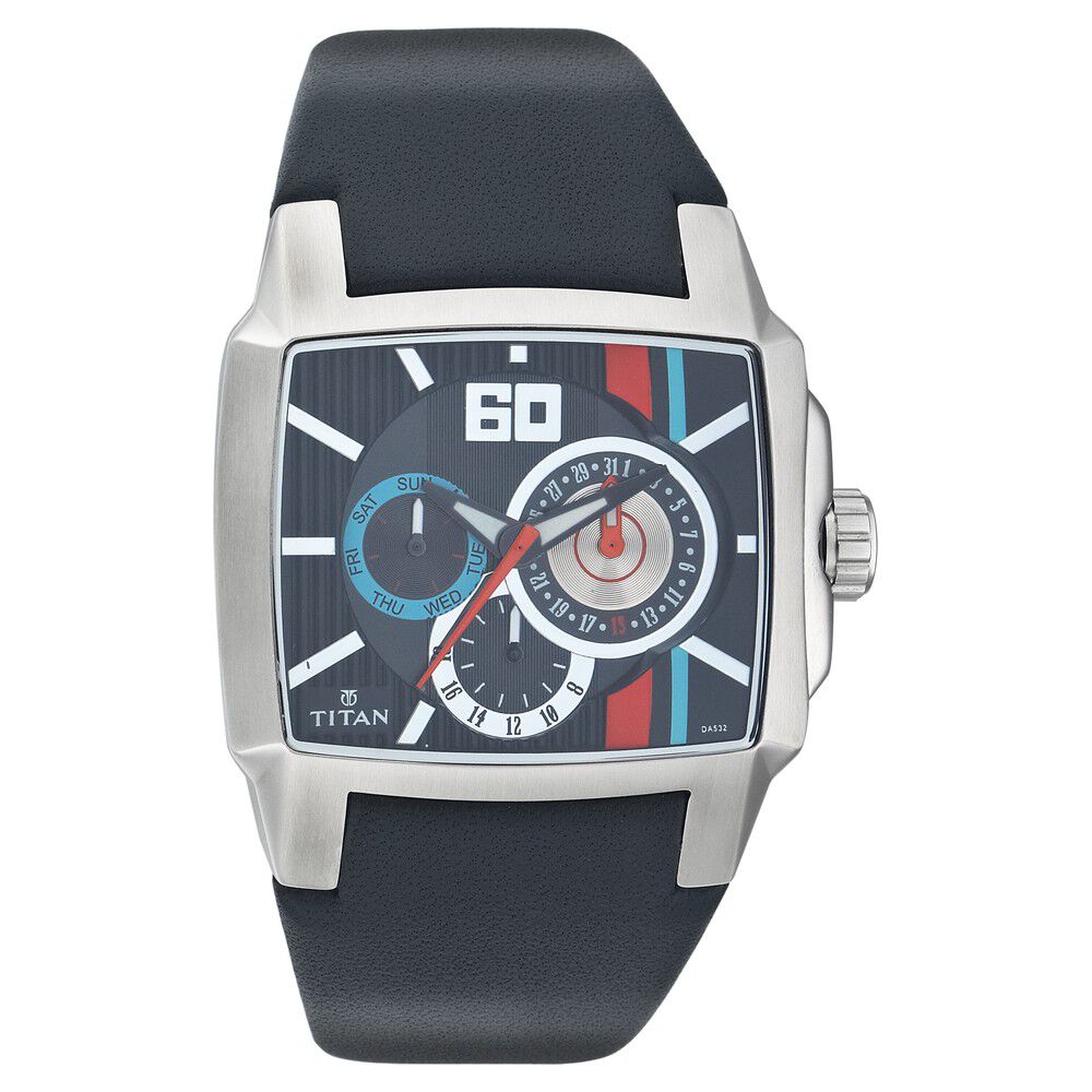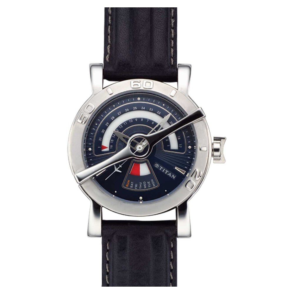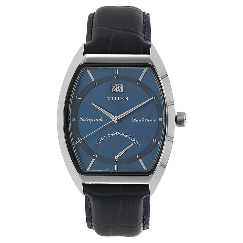 Titan Dual Time Blue Dial Leather Strap watch for Men-1680SL03