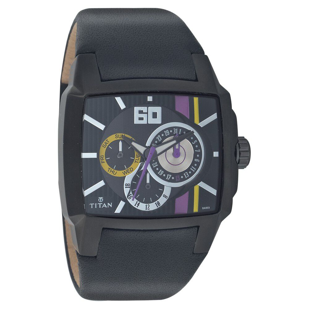 Titan Quartz Multifunction Black Dial Watch for Men-NC9371NM01