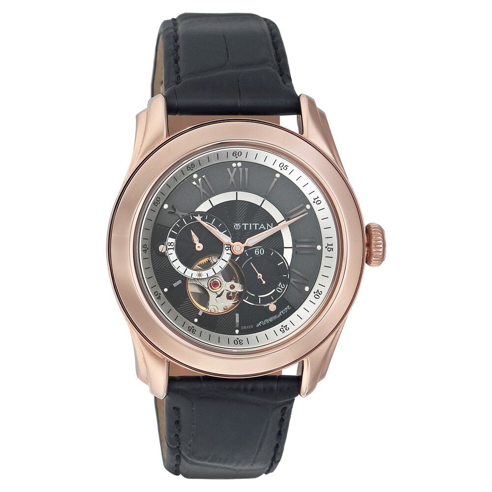 Titan Mechanical Black Dial Leather Strap watch for Men-NB1043SL11