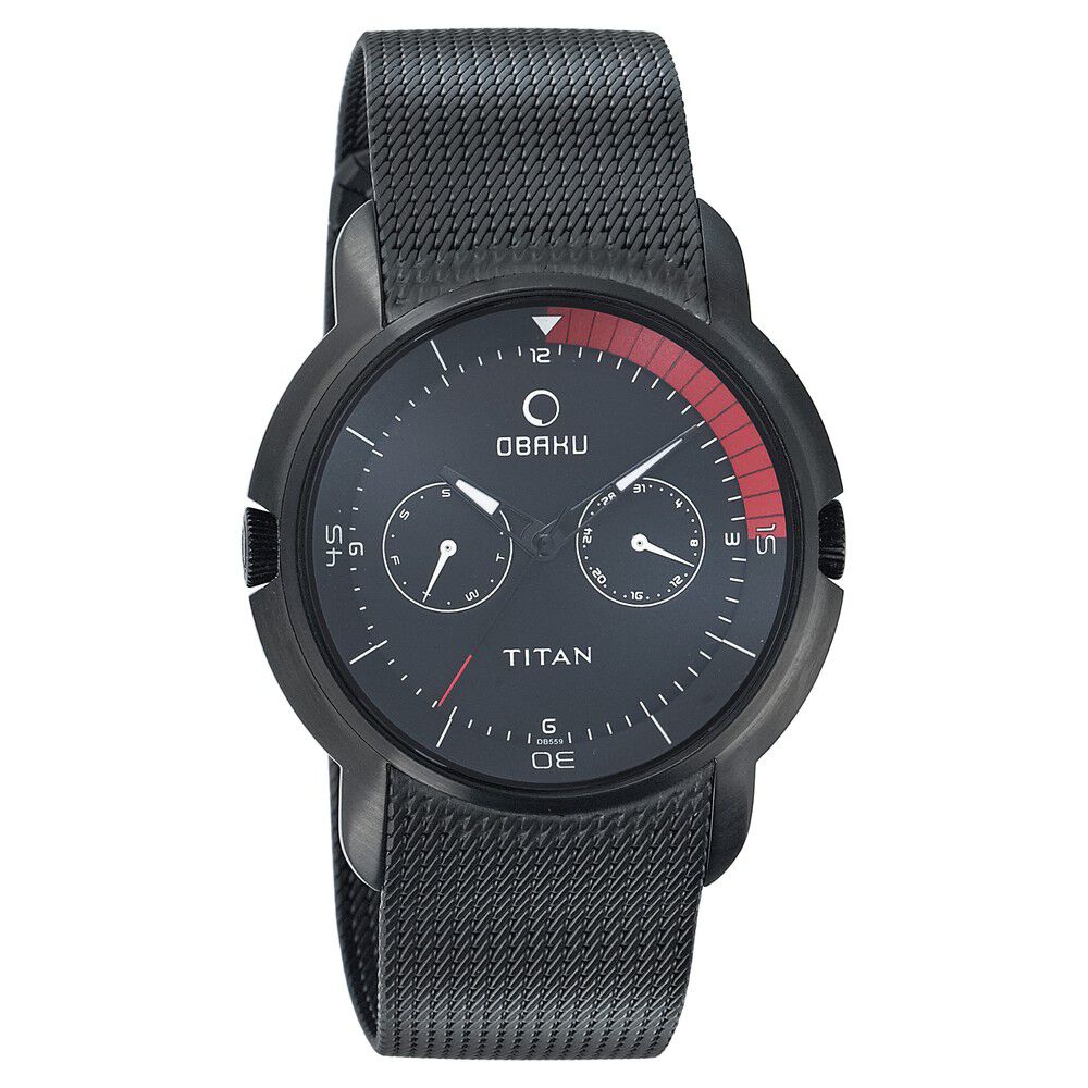 Titan Quartz Multifunction Black Dial Watch for Men-NC9371NL01