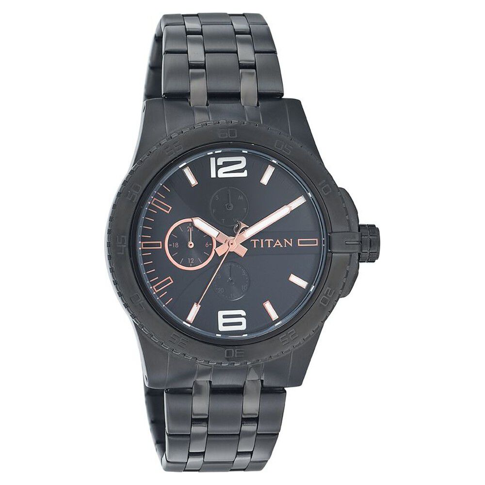 Titan Octane Black Dial Quartz Multifunction Metal Strap watch for Men-9446SM03J