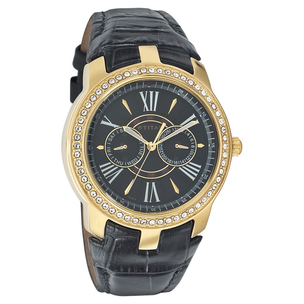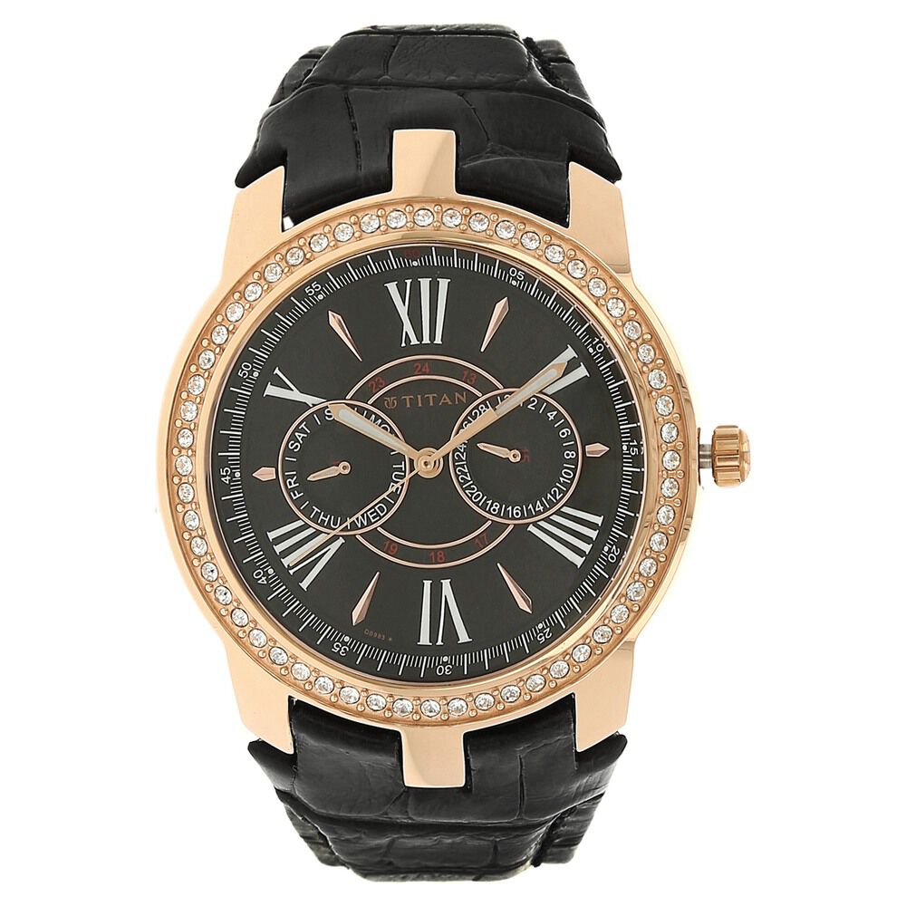 Titan Tycoon Black Dial Quartz Multifunction Leather Strap watch for Men-NE1535WL04