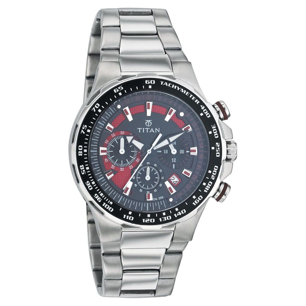 Titan Quartz Chronograph Black Dial Watch for Men-NB9405SL03