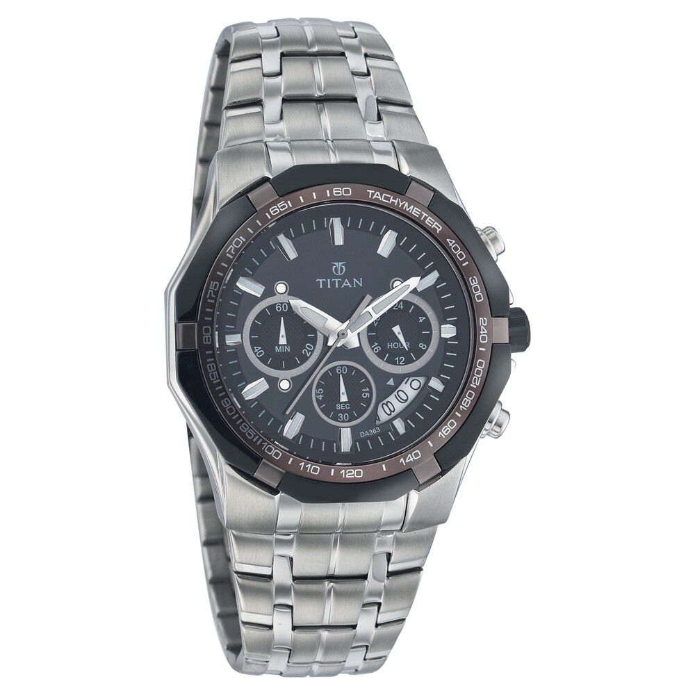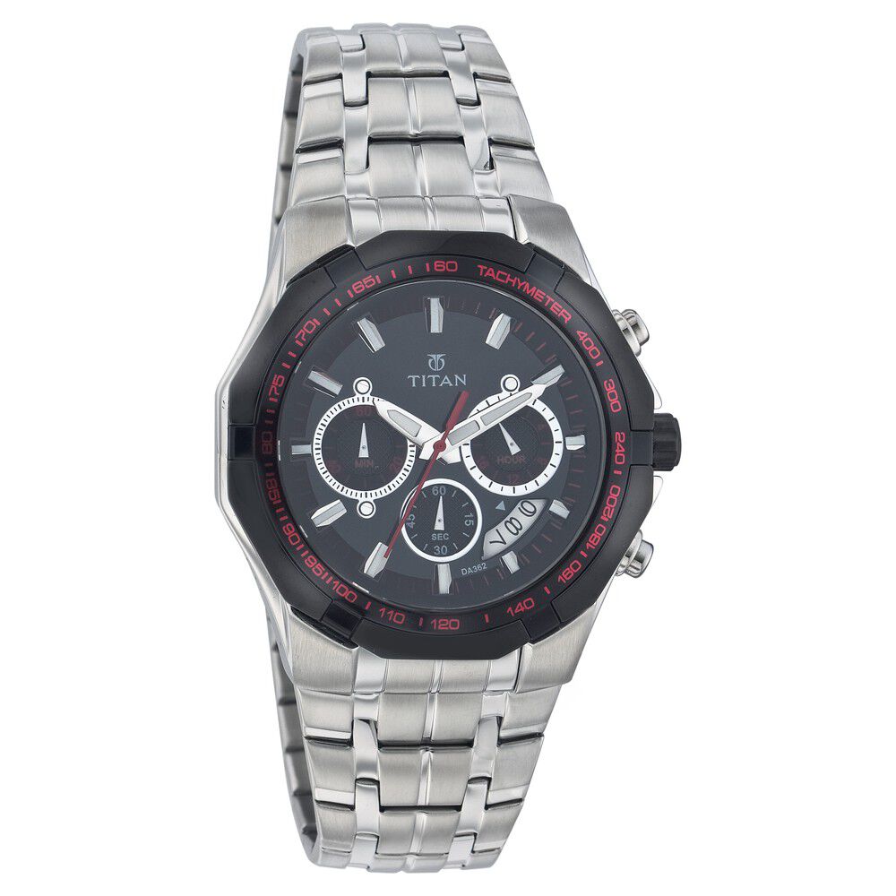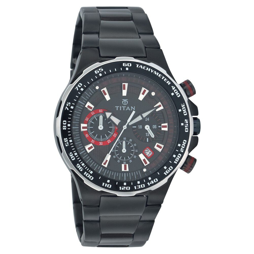 Titan Octane Black Chrono Stainless Strap Watch for Men-90048KM03