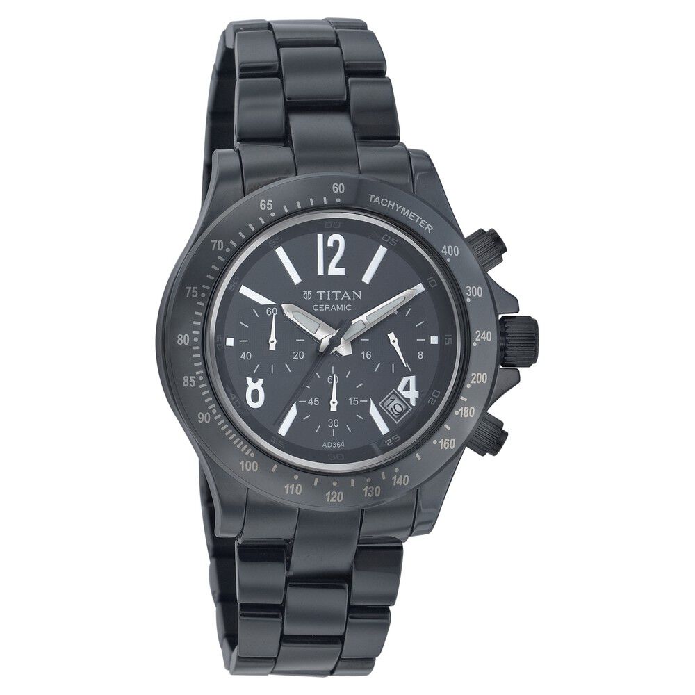Titan Chronograph Black Dial Ceramic Strap watch for Men-NE9391NC01J