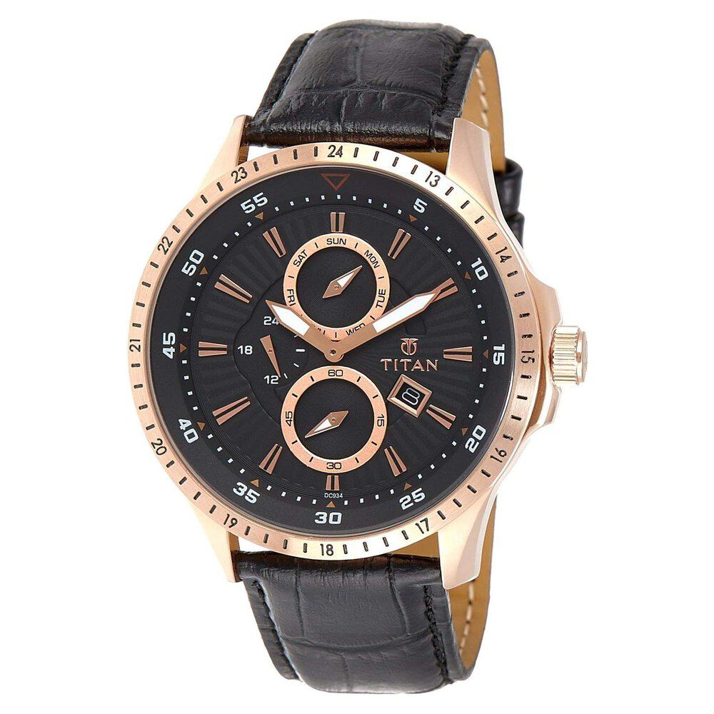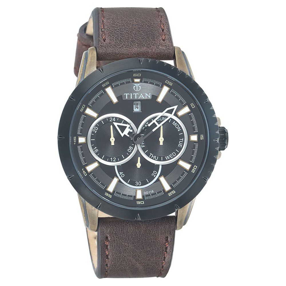 Titan Quartz Analog with Day and Date Black Dial Watch for Men-ND1580YL06
