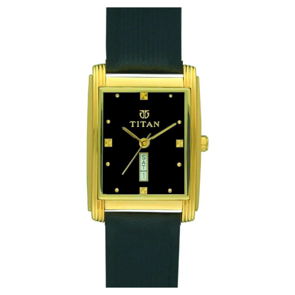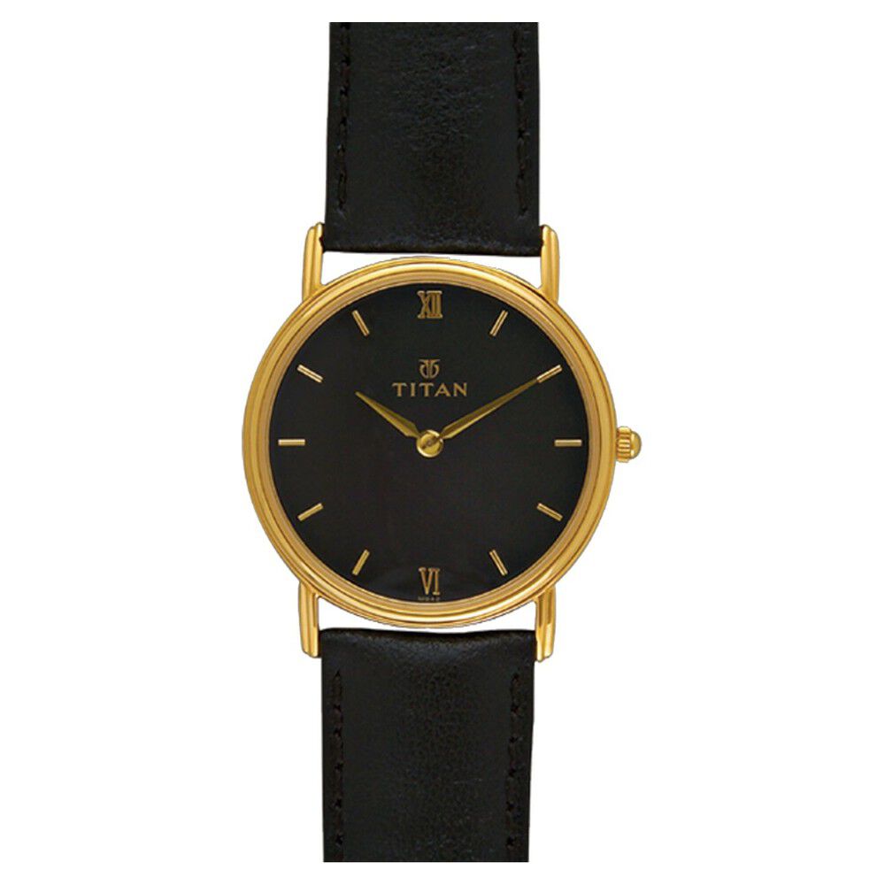 Titan Classic Black Dial Leather Strap watch for Men-NC1044YL08