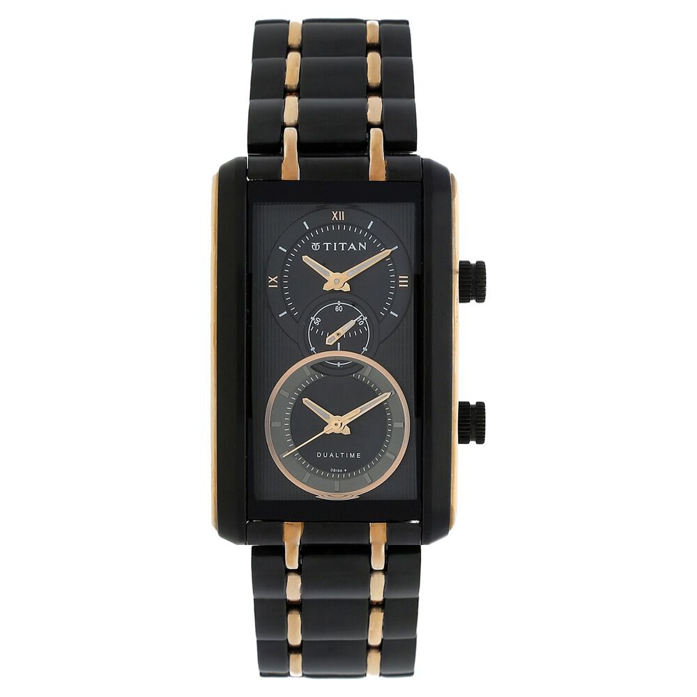 Titan Dual Time Black Dial Stainless Steel Strap watch for Men-NC1569KM01