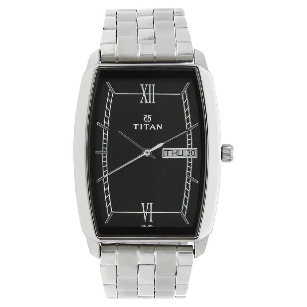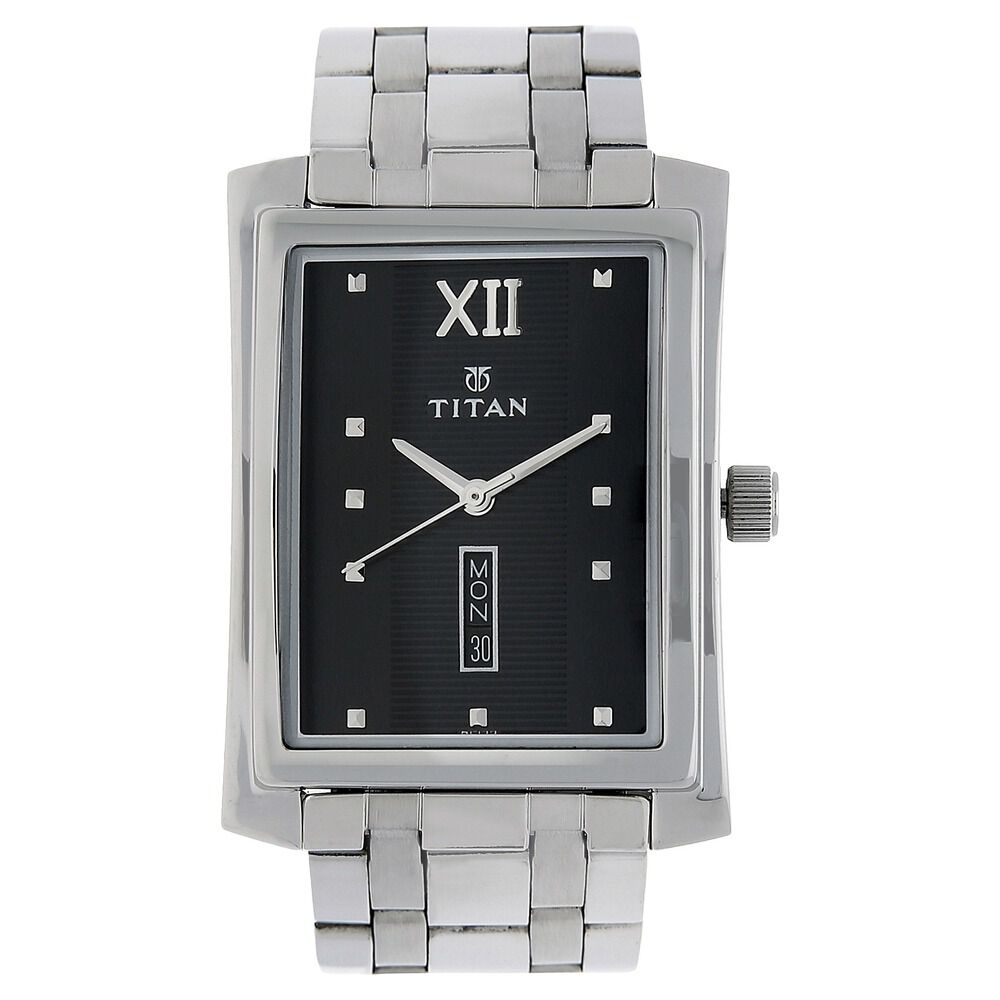 Titan Rectangle Black Dial Analog with Day and Date Stainless Steel Strap Watch for Men-NH90023SM01