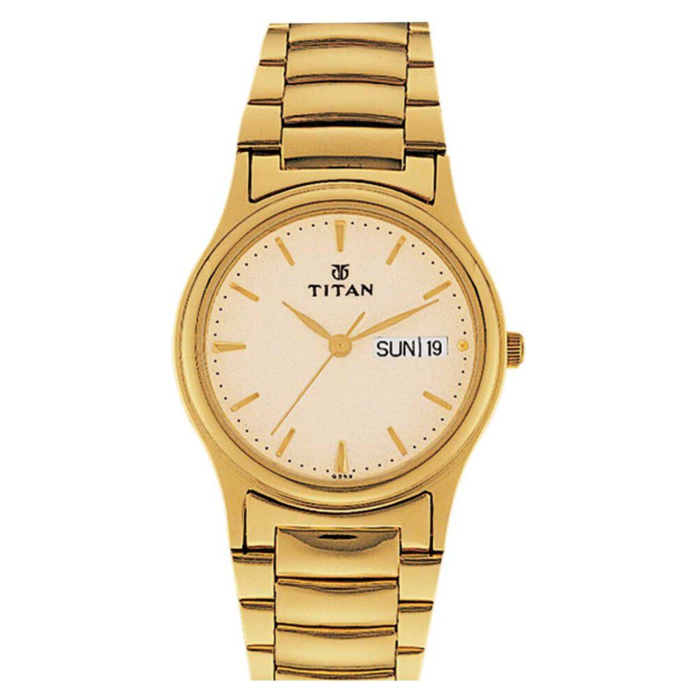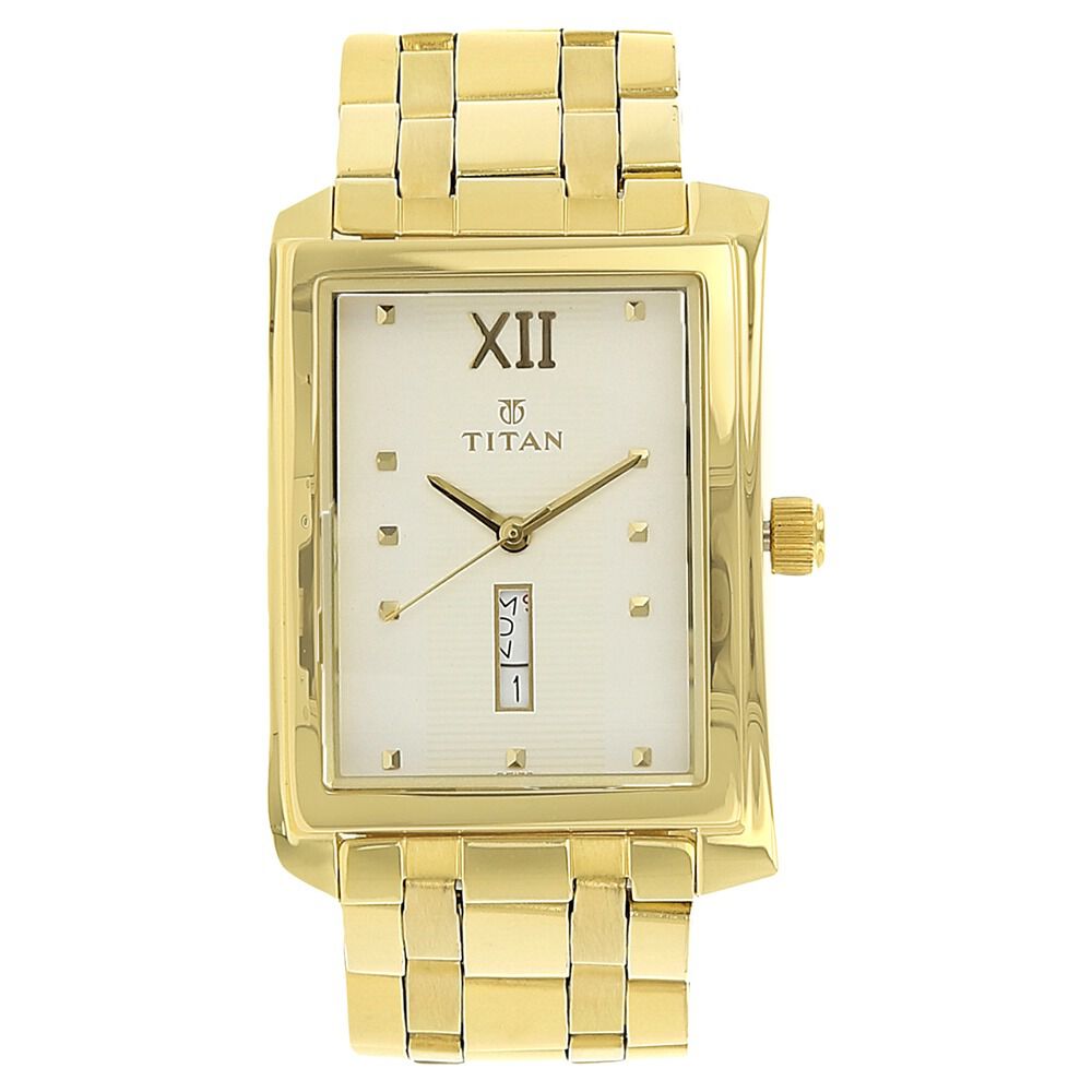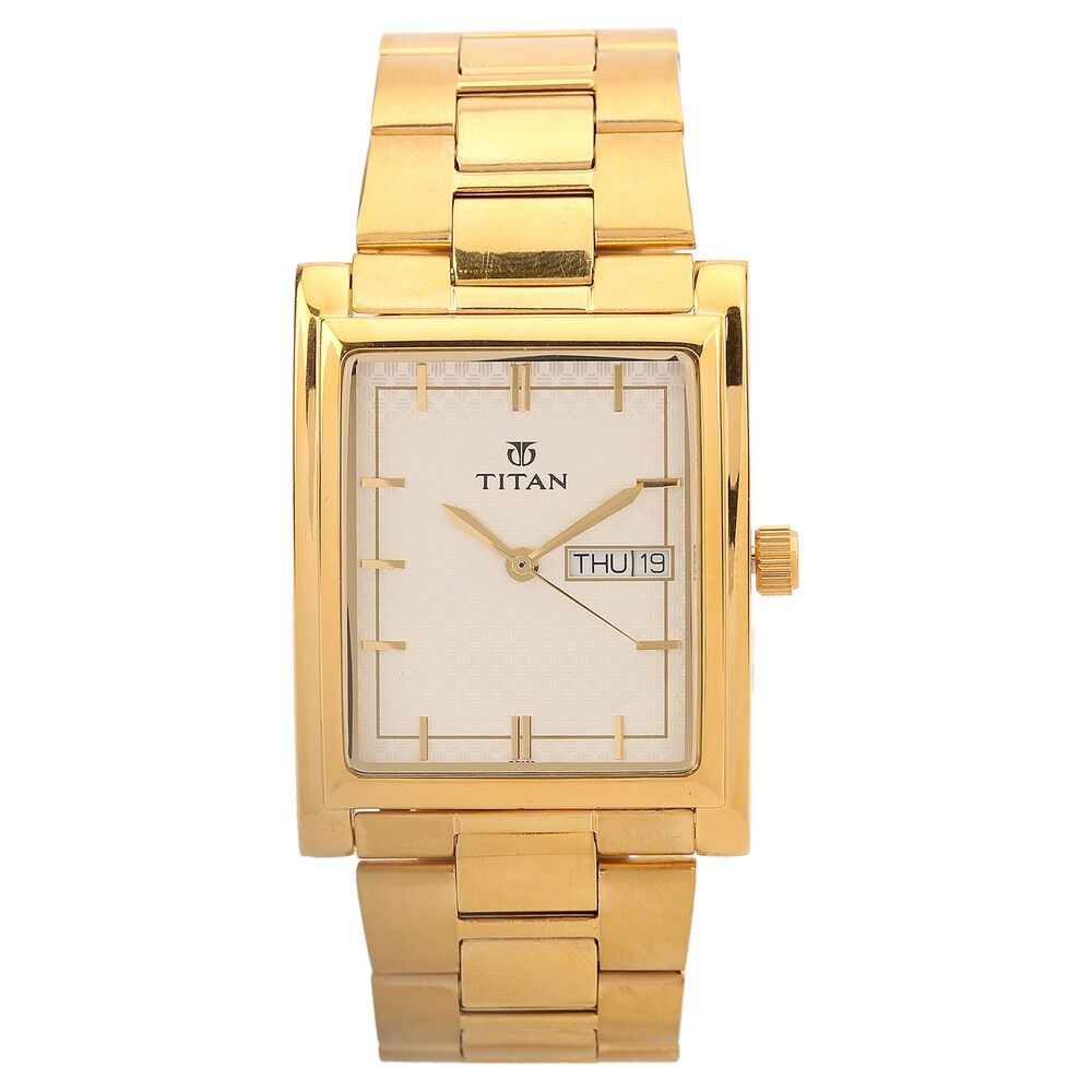 Titan Analog with Day and Date Beige Dial Stainless Steel Strap watch for Men-NH1678SM02