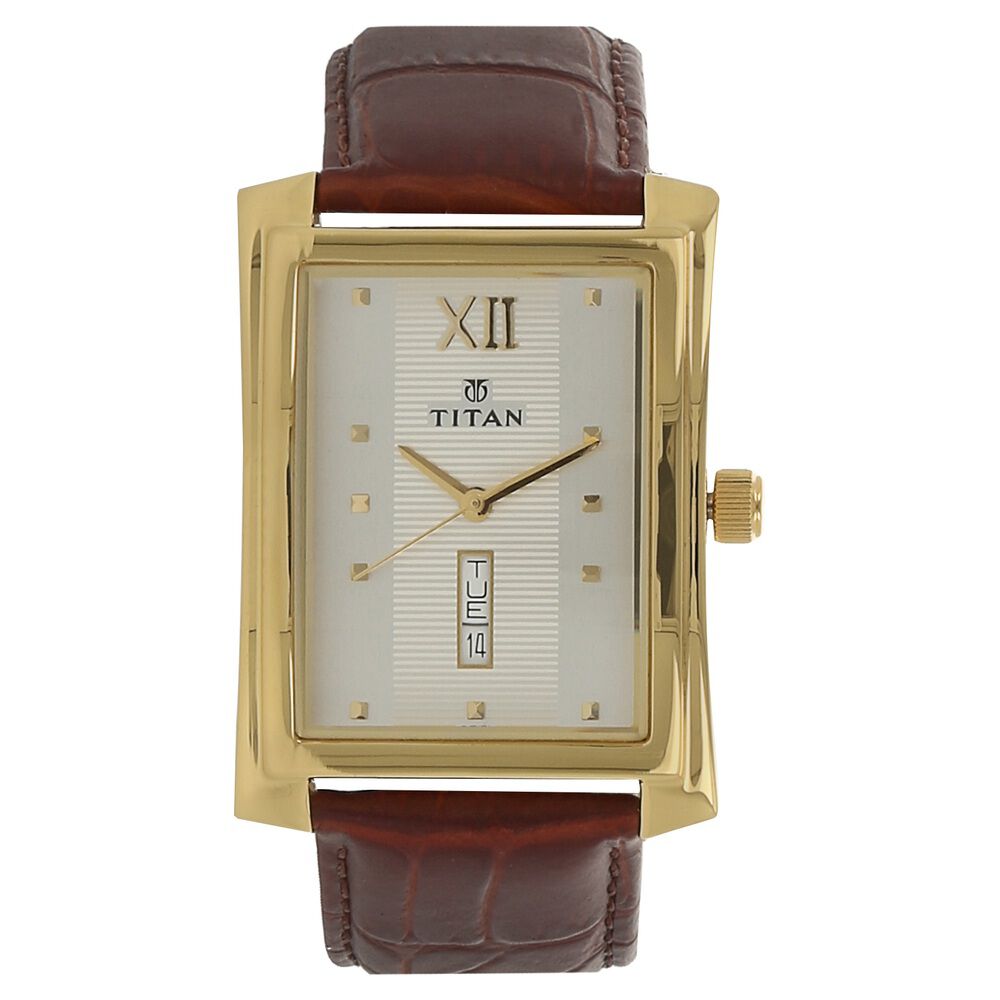 Titan Silver Dial Analog with Day and Date Leather Strap watch for Men-NH90023YL01