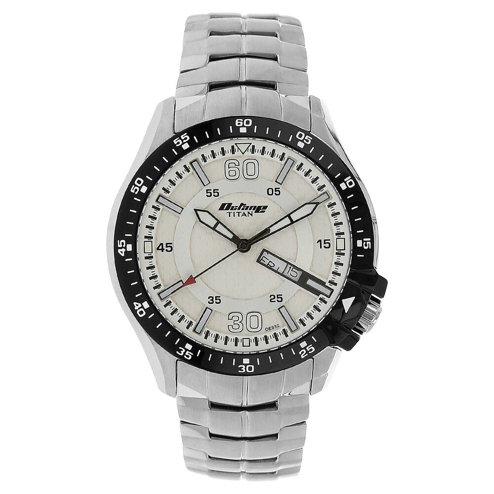 Titan Metal White Dial Analog with Day and Date Stainless Steel Strap Watch for Men-NT1650BM01