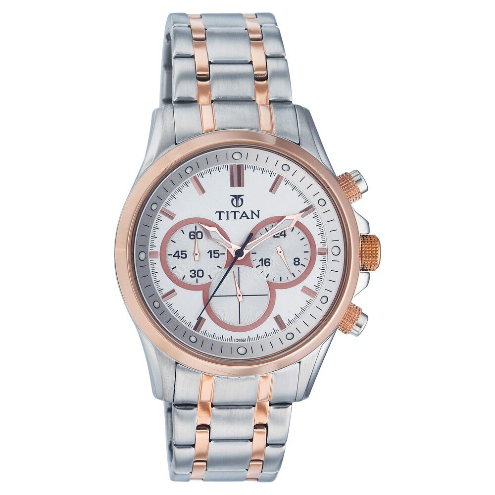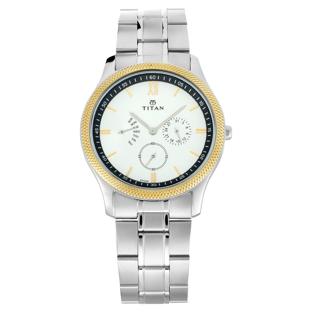 Titan Regalia Rome White Dial Quartz Multifunction Stainless Steel Strap watch for Men-NK1721BM01