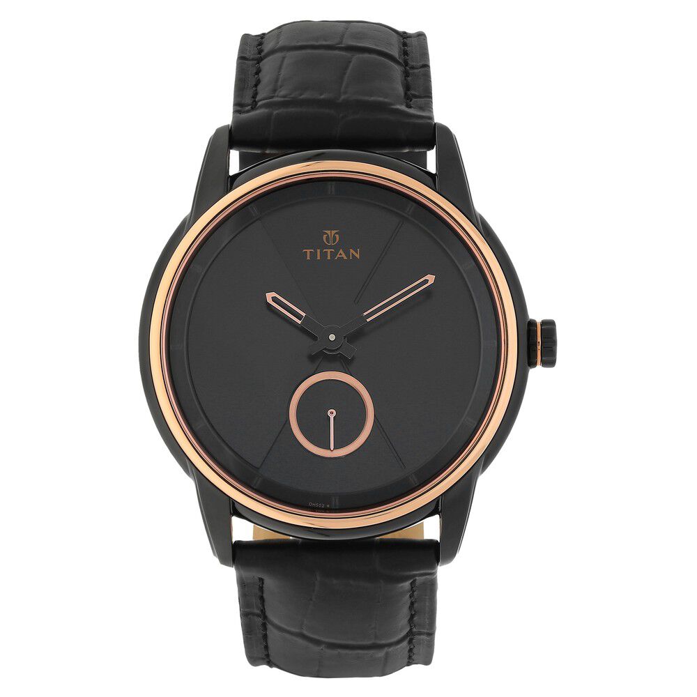 Titan Men's Classic Watch: Gradient Dial & Sleek Markings with Leather Strap-NS1802SL12
