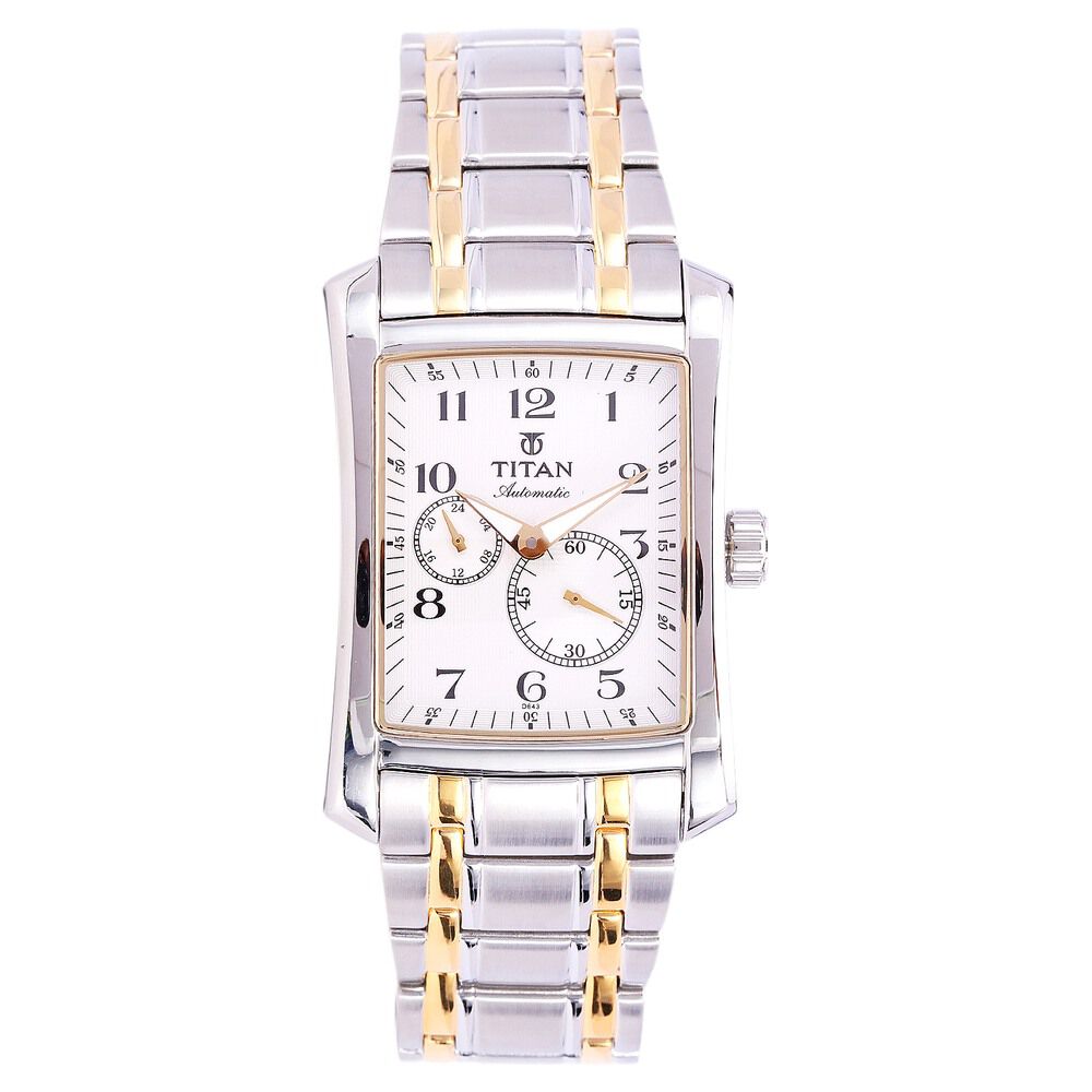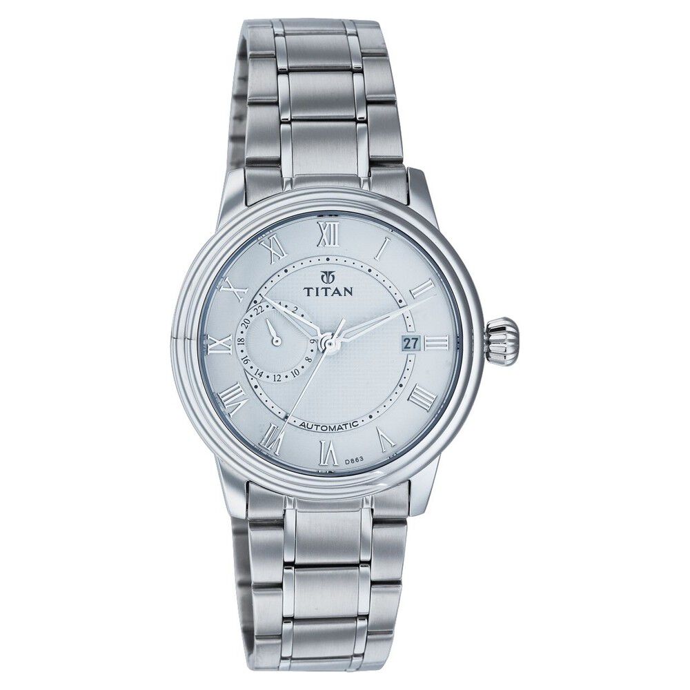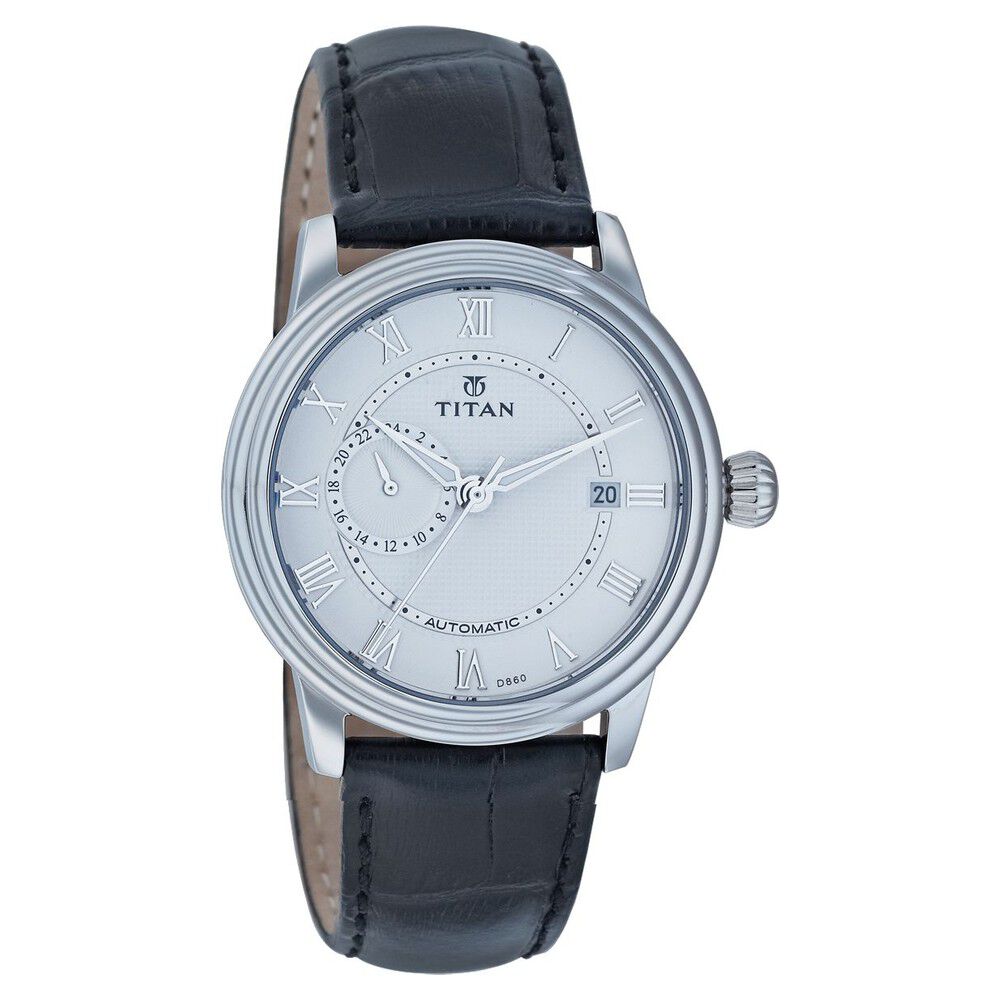 Titan Automatic Silver Dial Brown Leather Strap Watch for Men