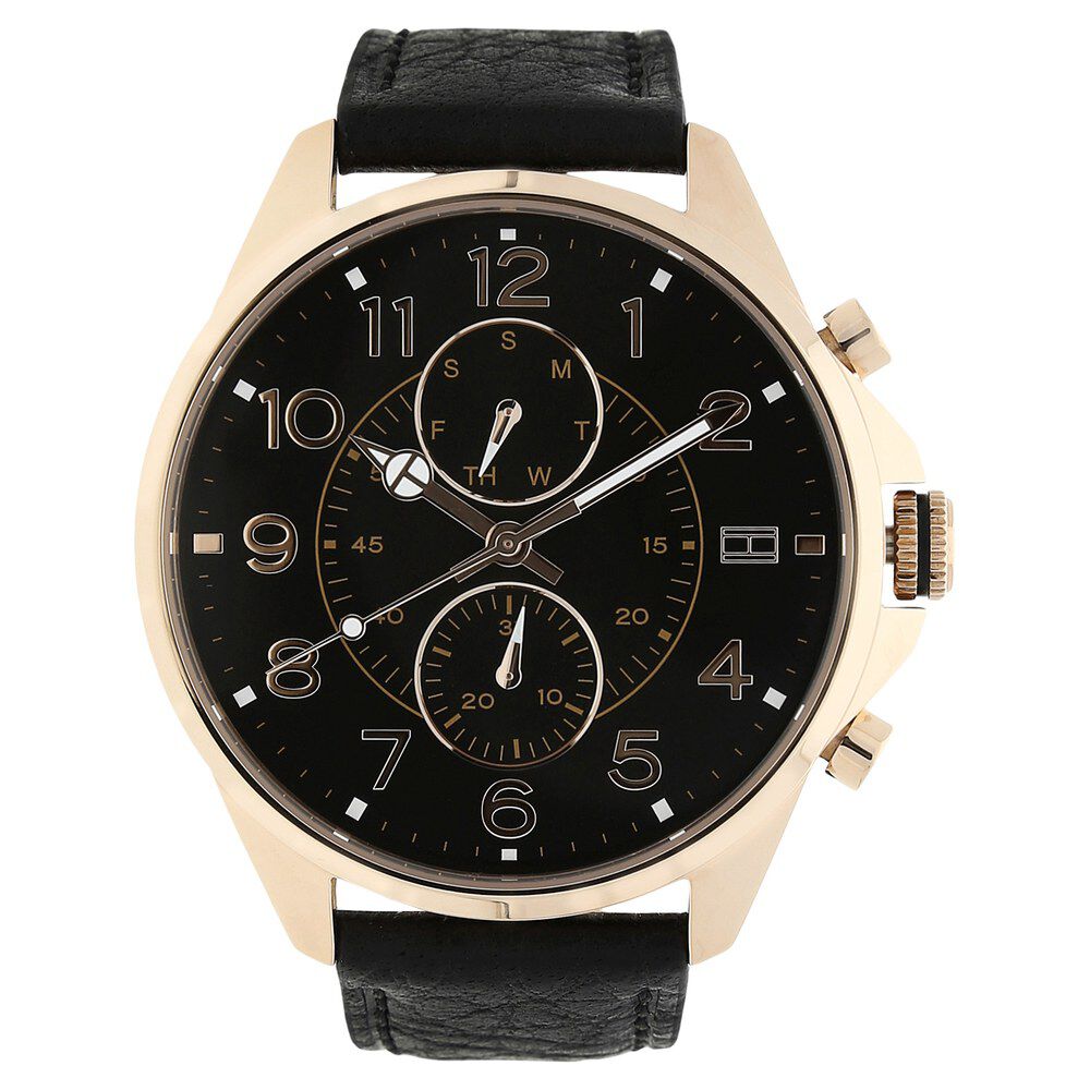 Tommy Hilfiger Quartz Multifunction Black Dial Leather Strap Watch for Men-NCTH1791273